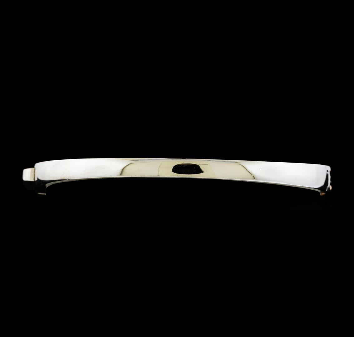 One electronically tested 14KT rose and white gold lady's combination cast & assembled fashion bangle bracelet with a tongue clasp with foldover safety with a bright polish finish. The featured lady's bracelet measures approximately 7 inches in length. Identified with markings of 'K14'. Condition is new, good workmanship. Containing: Fifty prong set round brilliant cut diamonds, measuring 1.75 - 1.65 x 1.05mm (depth est.) approximate total weight of 50 Stones = 0.95ct. Graded in the setting. Clarity SI-1 to I-1. Color: G - I Cut Good. Total Weight of Diamonds 0.95ct.. Total Weight of Bangle Bracelet 18.40gm. GAS Appraised.