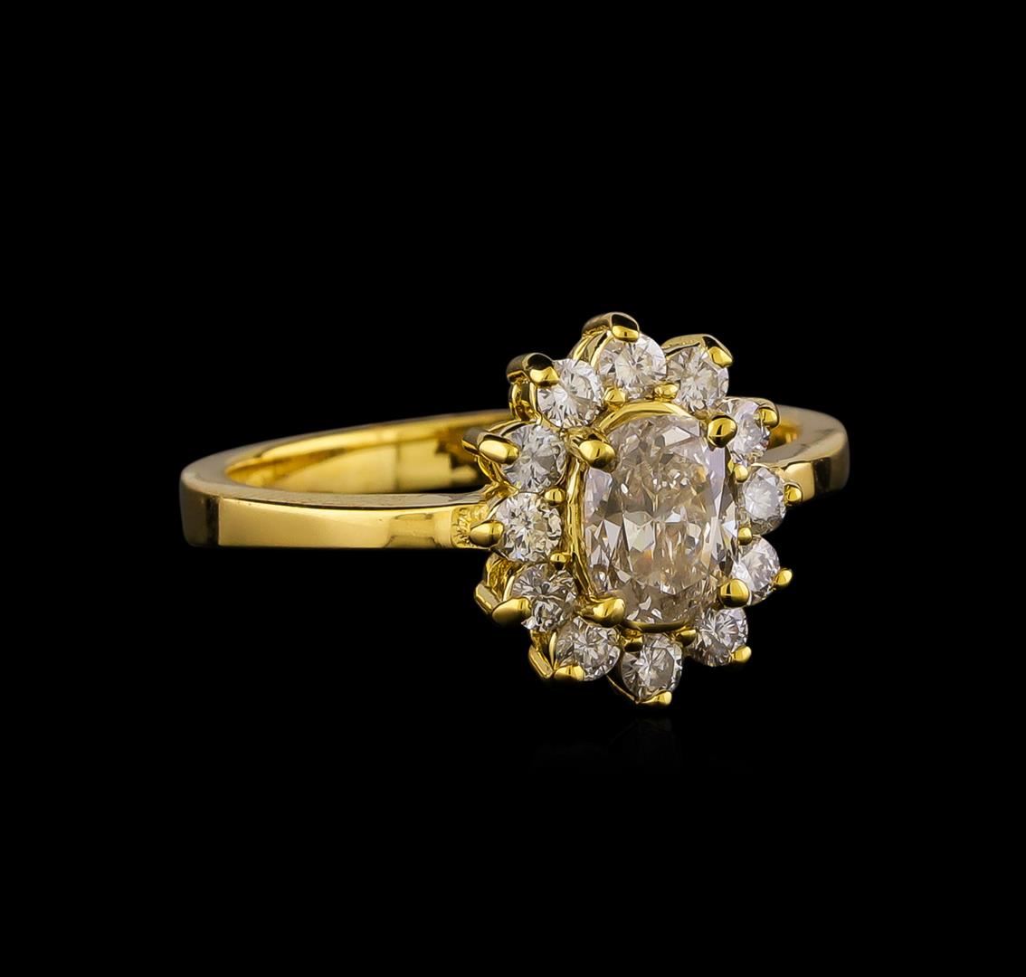 One ring : 14KT yellow gold weighing 3.39gm containing one diamond center stone with a total weight of 0.55ct. and side diamonds weighing 0.40ctw.