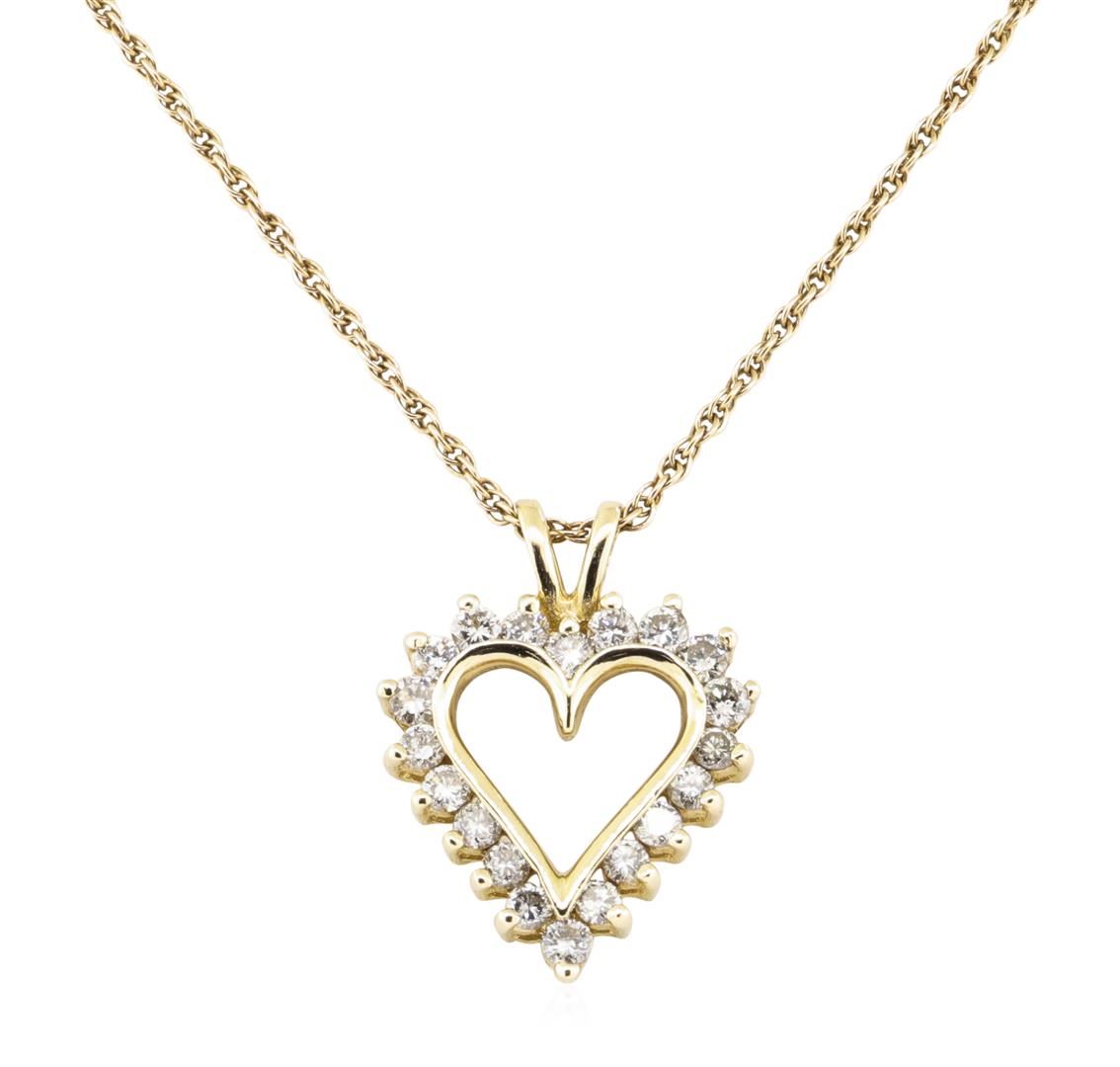 One pendant with an attached eighteen inch long loose rope chain featuring: 14KT yellow gold weighing 5.9 grams containing diamonds weighing 1.00ctw.