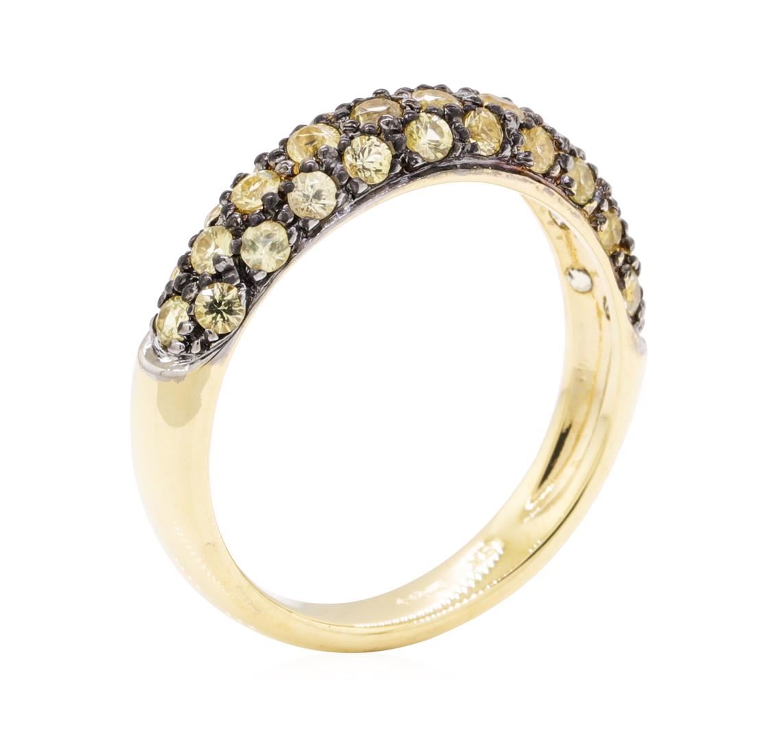 One lady's ring featuring: 18KT yellow gold weighing 3.8 grams containing greenish yellow sapphires weighing 1.00ctw.