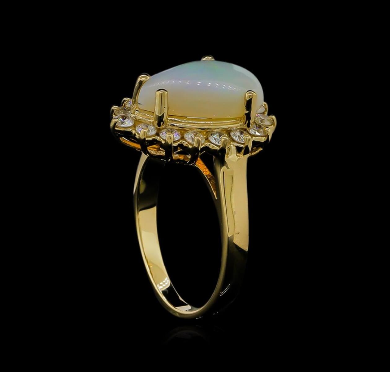 One ring featuring: 14KT yellow gold weighing 5.69 grams containing one opal with a total weight of 1.00 ct and side diamonds with a total weight of 0.68ct.