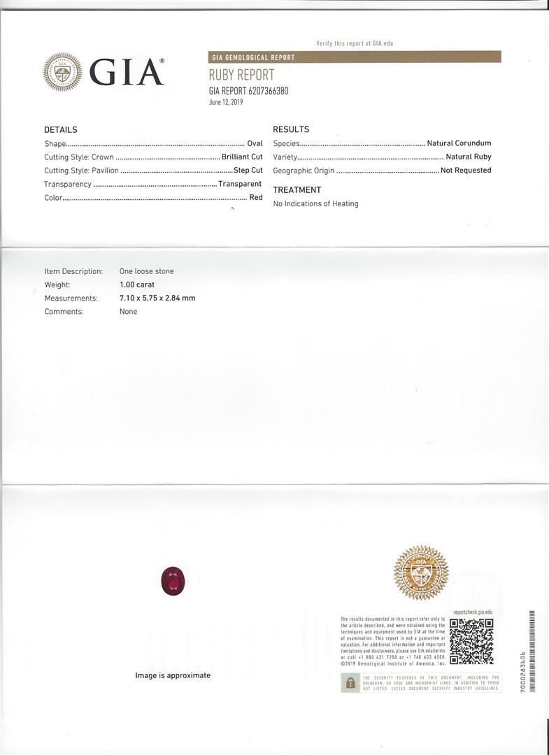 One 1.00ct Ruby and Diamond Ring - 14KT White Gold. AIG certified. See Appraisal for more details. AIG Appraised.