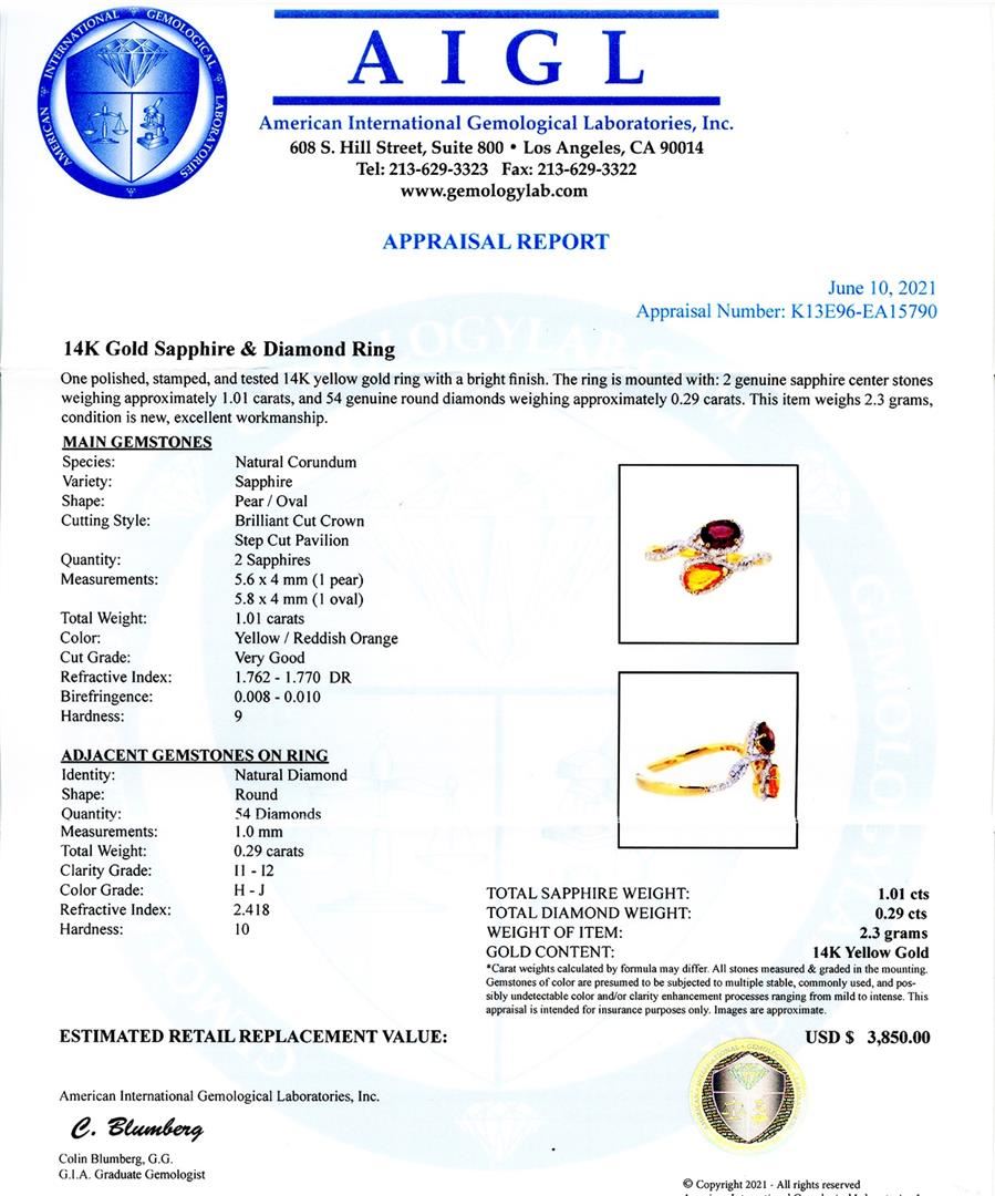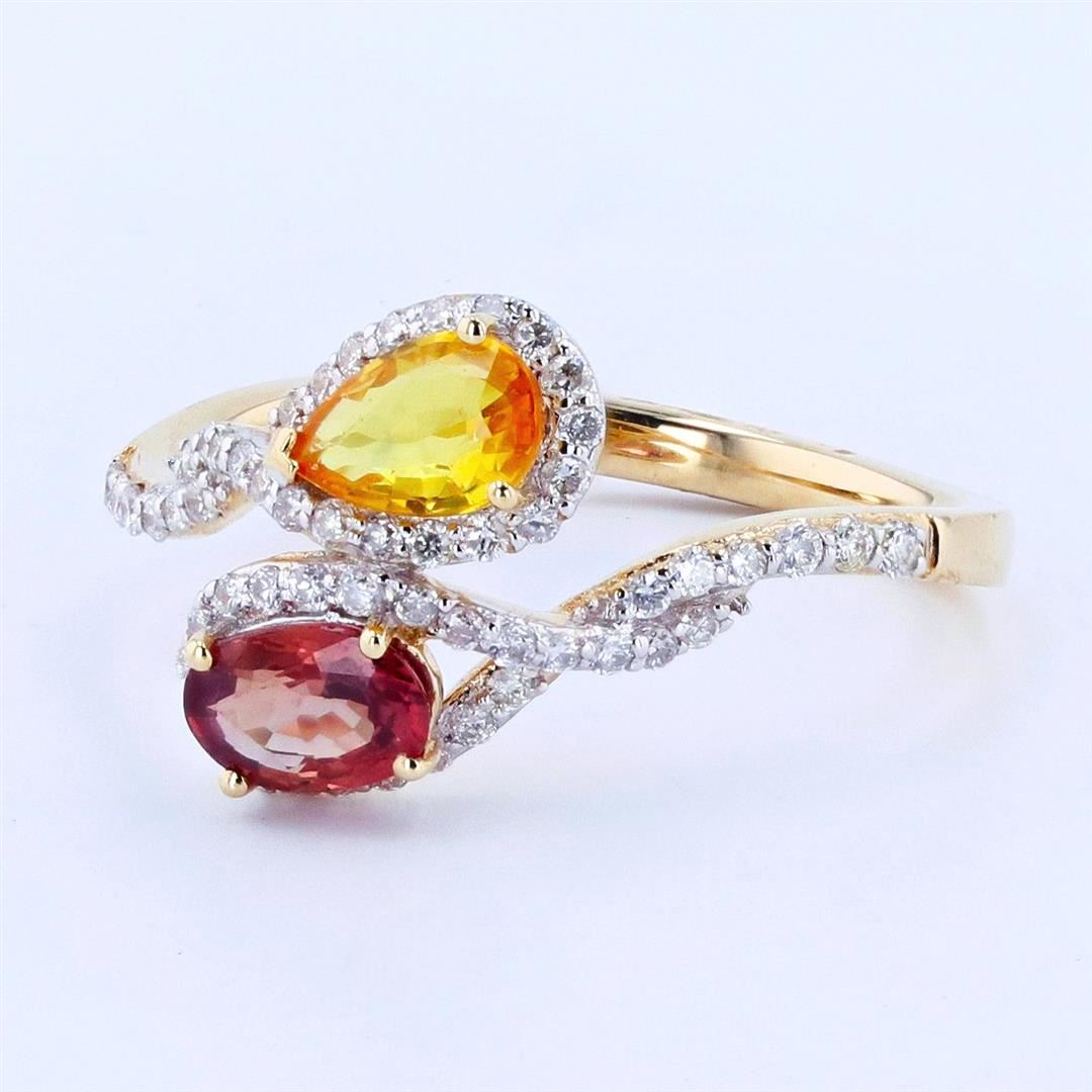 1.01 ctw Yellow and Reddish Orange Sapphire and 0.29 ctw Diamond 14K Yellow Gold