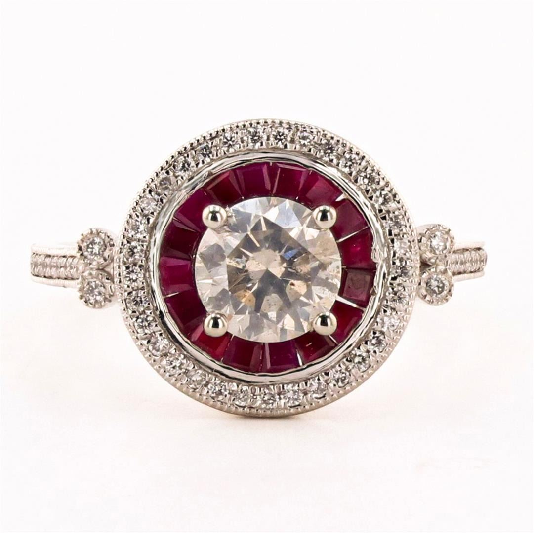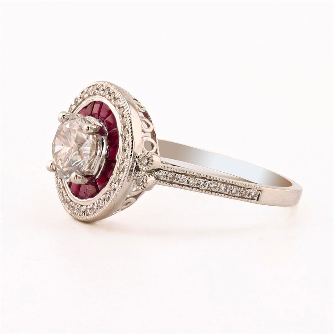 1.02 ctw CENTER Diamond and 0.69 ctw Ruby Platinum Ring (1.23 ctw Diamonds)