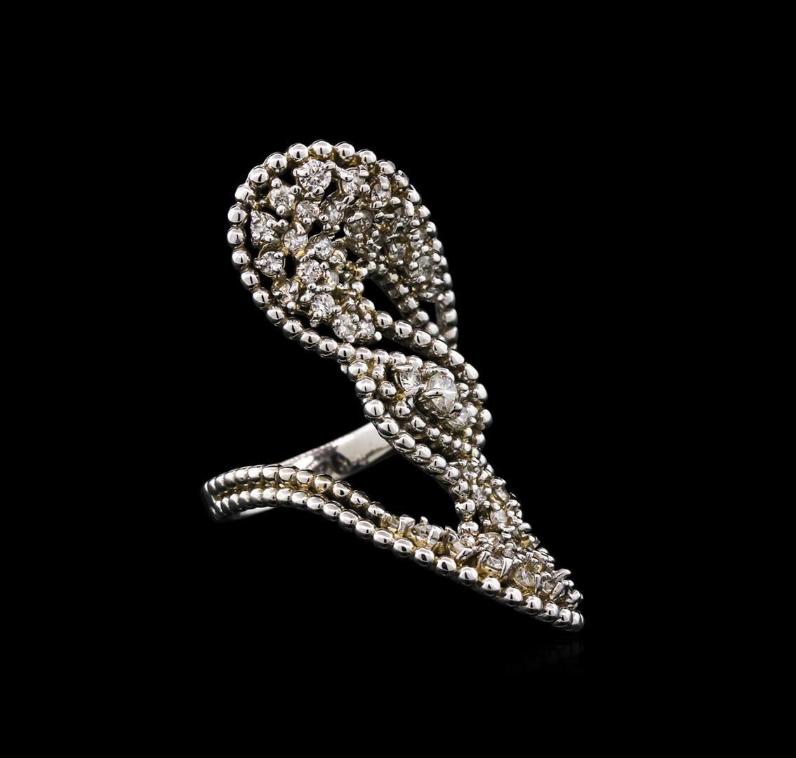 One electronically tested 14KT white gold lady's combination cast & assembled fashion ring with a bypass shank with a bright polish finish. The featured lady's ring has a swirled "S" motif and a shank measuring 3.2 millimeters in width. Identified with markings of "14K". Condition is new, good workmanship. Containing: One prong set round brilliant cut diamond, measuring 2.70 - 2.65 x 1.74mm (depth est.) approximate weight of 0.08ct. Graded in the setting. Clarity: I-1. Color: Good Two prong set round brilliant cut diamonds, measuring 2.10 - 2.00 x 1.33mm (depth est.) approximate total weight of 2 Stones = 0.08ct. Graded in the setting. Clarity: I-1. Color: I - Good Fifty prong set round brilliant cut diamonds, measuring 1.80 - 1.40 x 1.04mm (depth est.) approximate total weight of 50 Stones = 0.93ct. Graded in the setting. Clarity: SI-2 to I-1. Color: I - Good. Total Weight of Diamonds 1.09ct. Total Weight of Ring 8.10gm at $3410.00.. GAS Appraised.