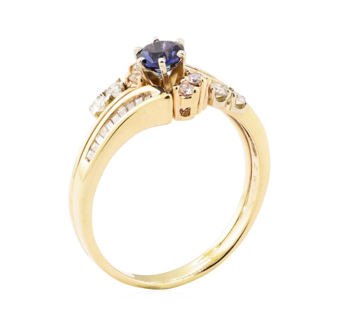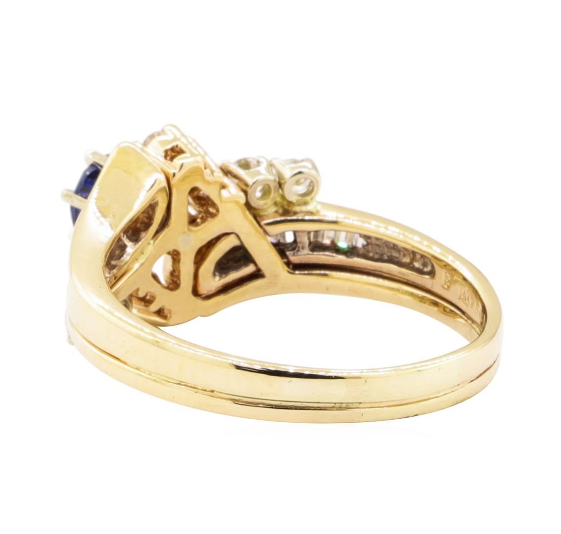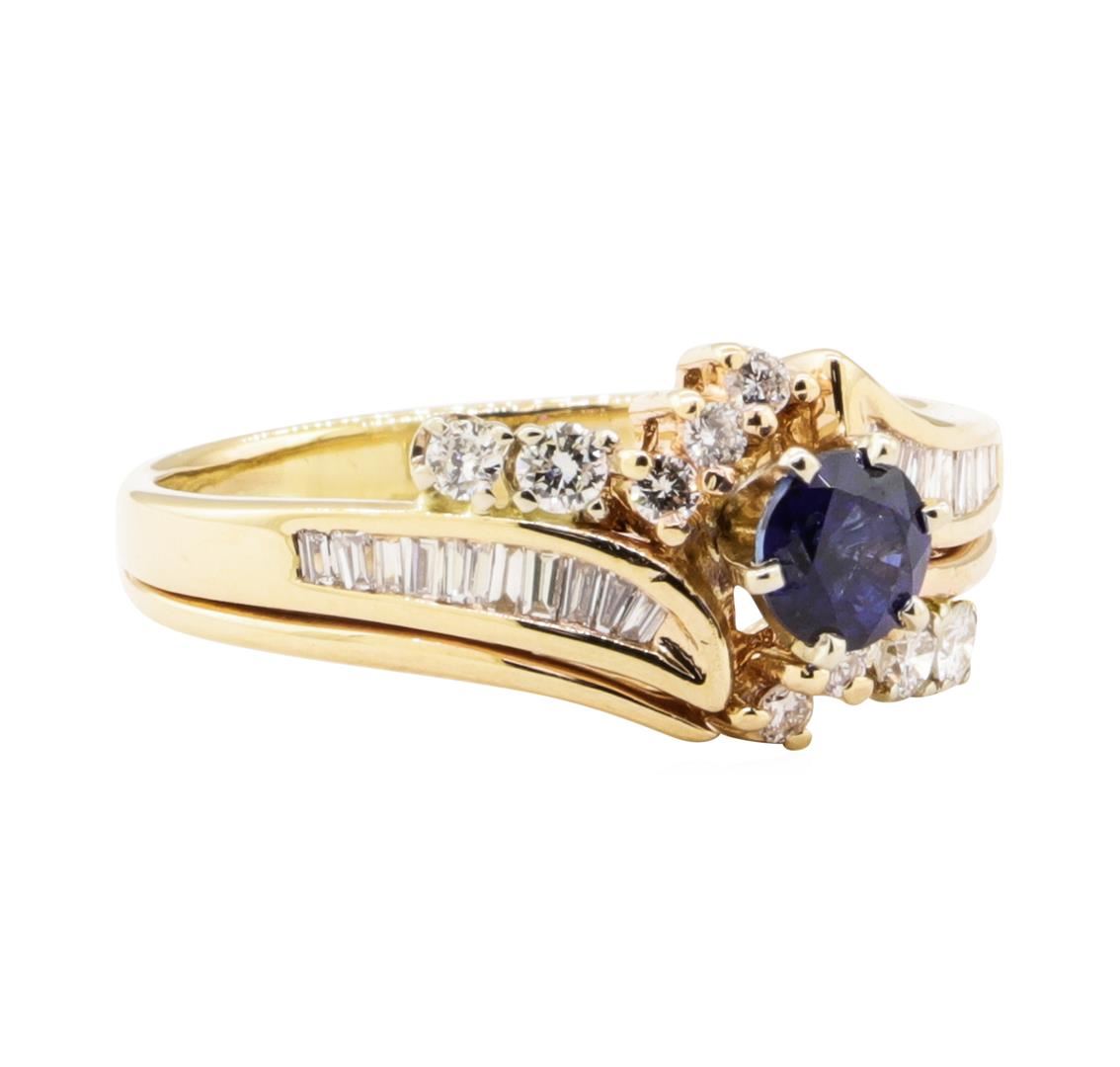 One band soldered to a ring featuring: 14KT yellow gold weighing 5.1 grams containing one sapphire weighing 0.60ct and diamonds weighing 0.50ctw.
