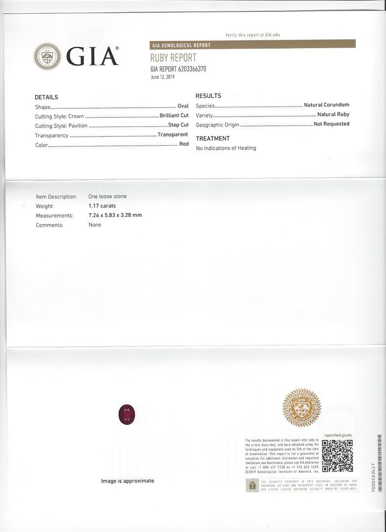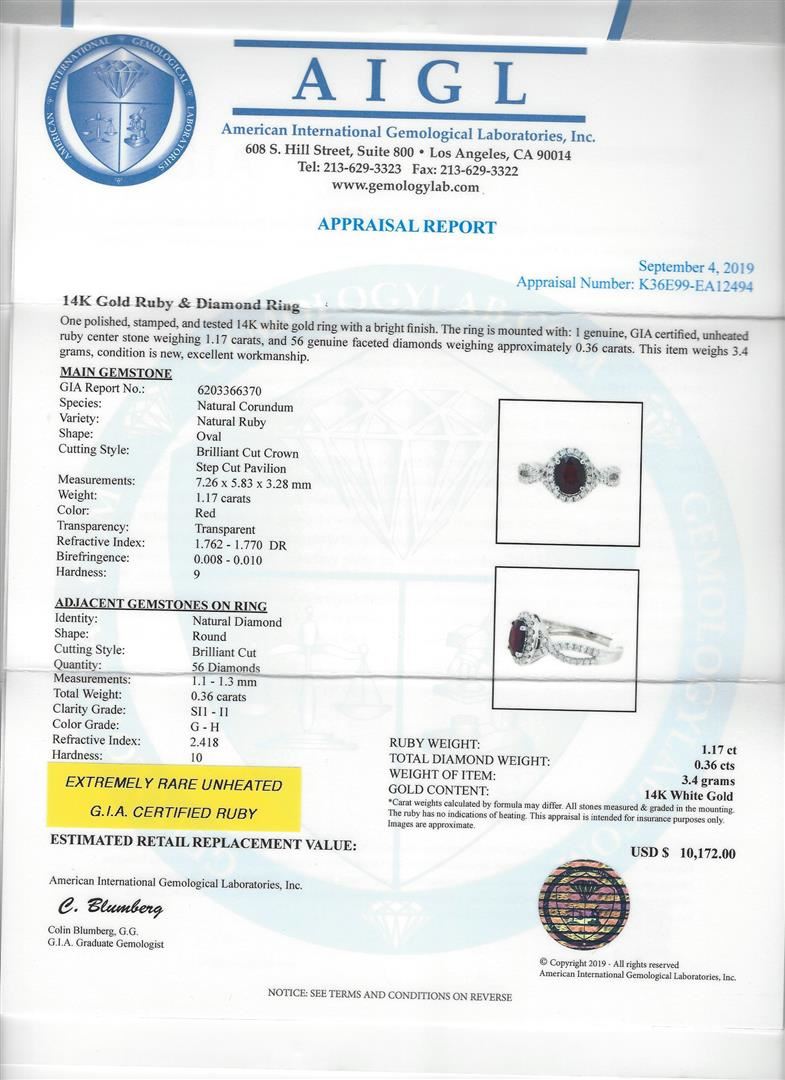 One 1.17ct Ruby and Diamond Ring - 14KT White Gold. AIG certified. See Appraisal for more details. AIG Appraised.