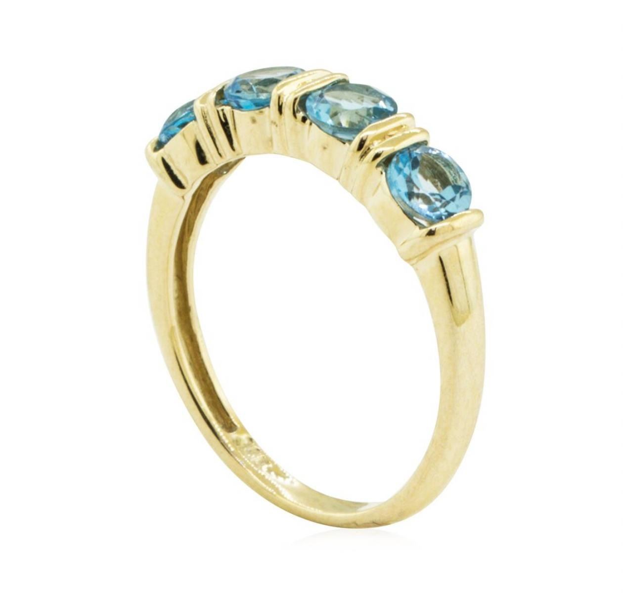 One ring featuring: 14KT yellow gold weighing 2.1 grams containing four blue topaz weighing 1.20 ctw.