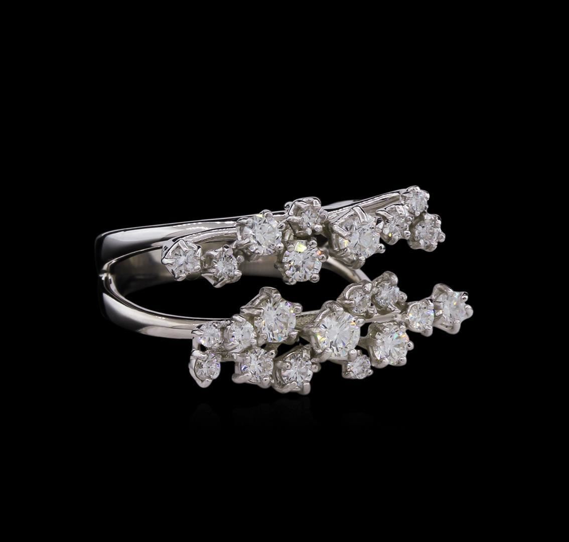 One electronically tested 14KT white gold lady's cast fashion ring with a split shank with a bright polish finish. The featured lady's ring has a shank measuring 3.50 millimeters wide. Identified with markings of "585". Condition is new, good workmanship. Containing: Six prong set round brilliant cut diamonds, measuring 3.30 - 2.60 x 1.77mm (depth est.) approximate total weight of 6 Stones = 0.56ct. Graded in the setting. Clarity: SI-1 to SI-2. Color: H - I. Cut Very Good Eighteen prong set round brilliant cut diamonds, measuring 2.30 - 1.70 x 1.26mm (depth est.) approximate total weight of 18 Stones = 0.64ct. Graded in the setting. Clarity: SI-1 to SI-2. Color: G - I. Cut Good. Total Weight of Diamonds 1.20 ct. Total Weight of Ring 6.00gm. GAS Appraised.