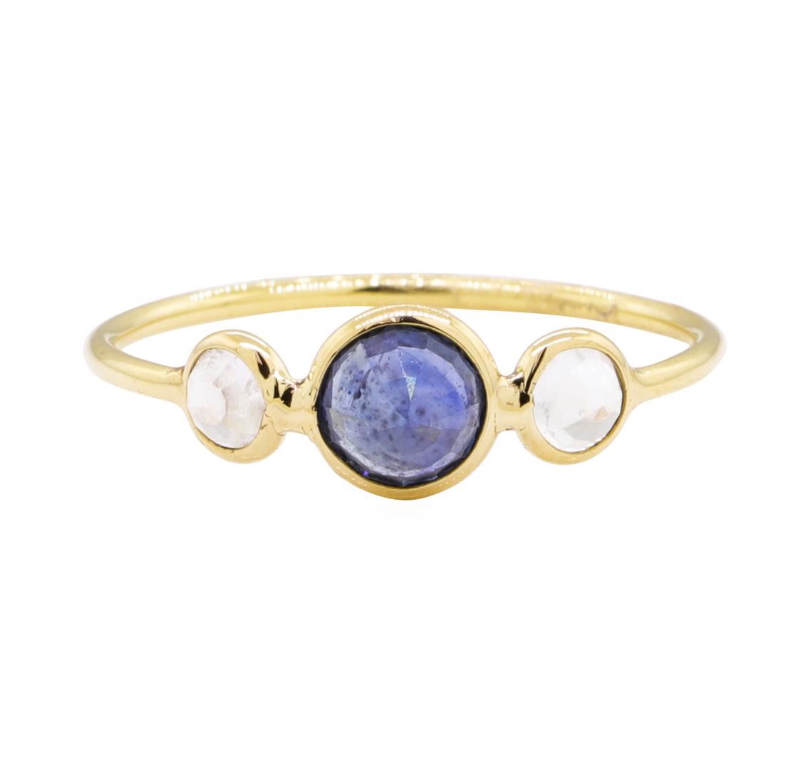 One ring featuring: 18KT yellow gold weighing 1.0 grams containing one sapphire weighing 0.80ct and two moonstones weighing 0.40ctw.