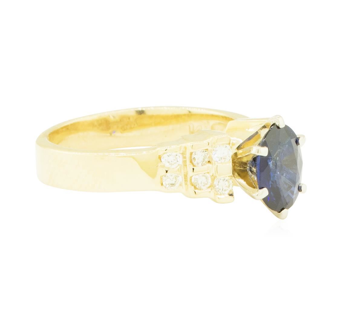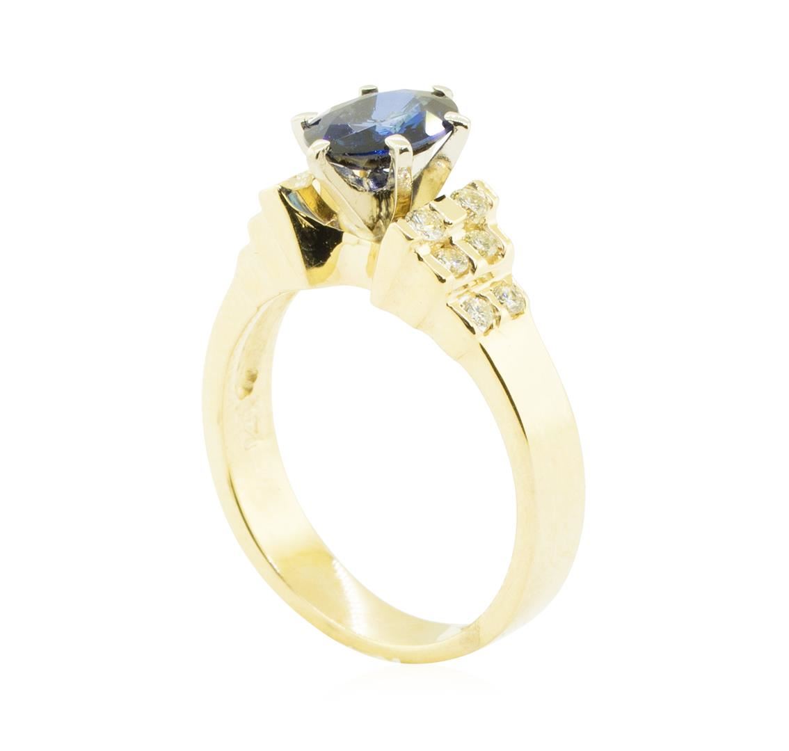 One ring featuring: 14KT yellow gold weighing 4.7 grams containing one blue sapphire weighing 1.05ct and diamonds weighing 0.25ctw.