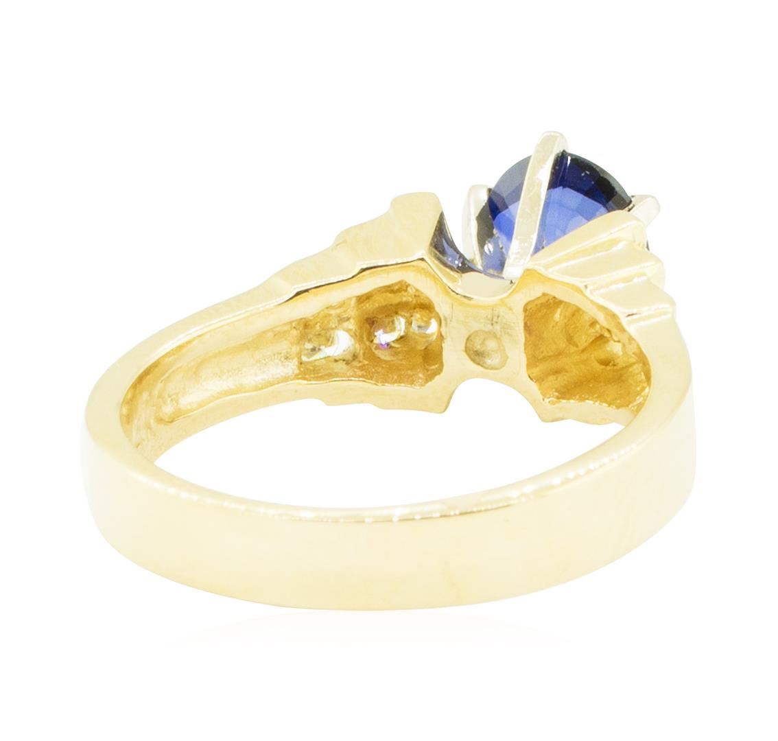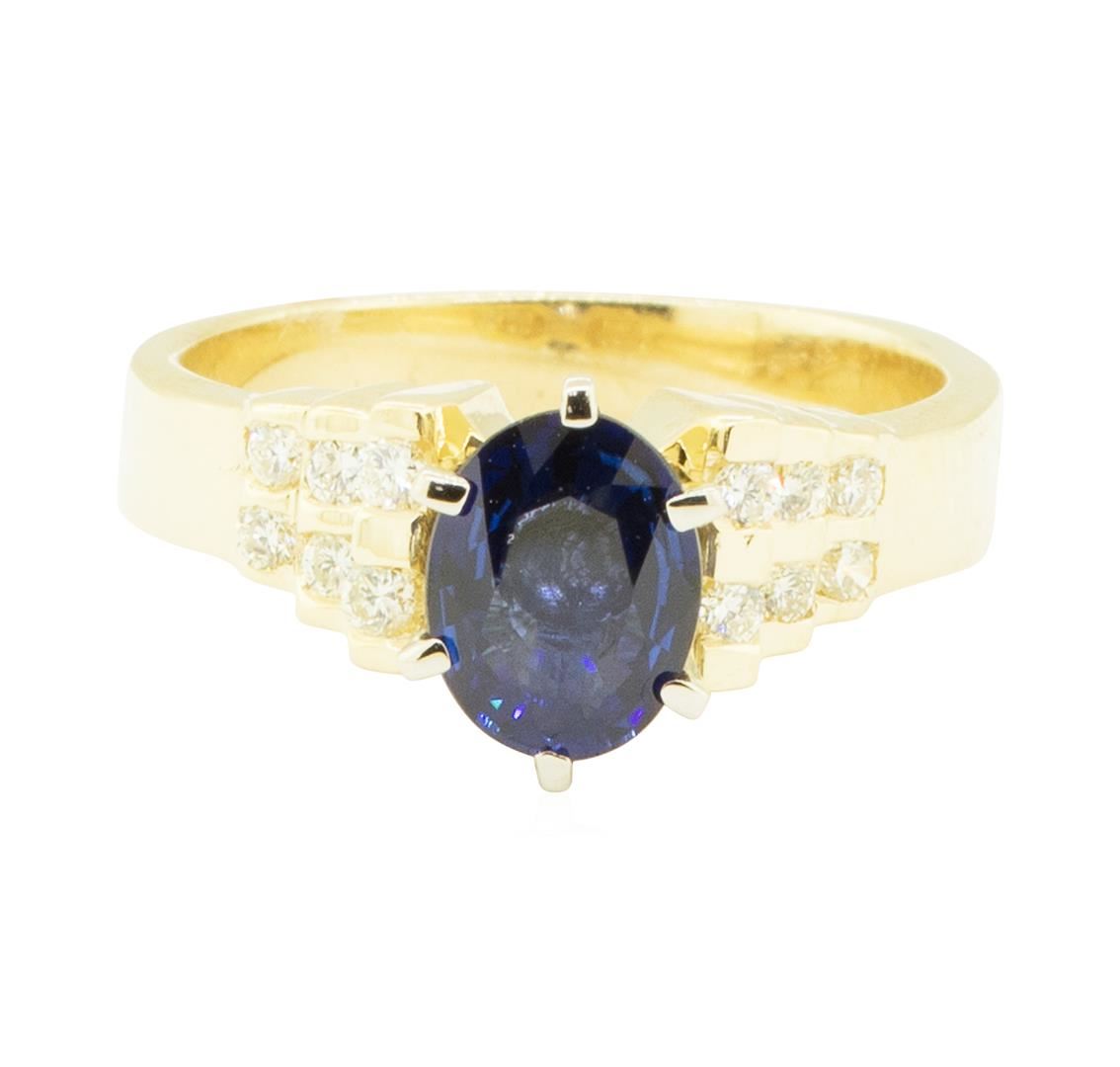 One ring featuring: 14KT yellow gold weighing 4.7 grams containing one blue sapphire weighing 1.05ct and diamonds weighing 0.25ctw.