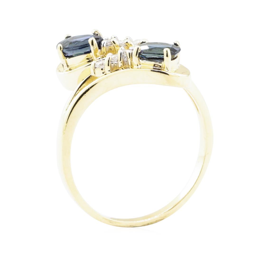 One ring featuring: 14KT yellow gold weighing 4.4 grams containing two sapphires weighing 1.15ctw and diamonds weighing 0.15ctw.