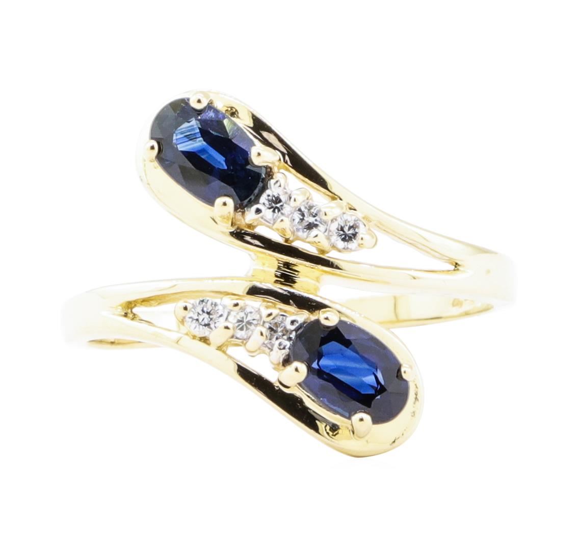 One ring featuring: 14KT yellow gold weighing 4.4 grams containing two sapphires weighing 1.15ctw and diamonds weighing 0.15ctw.