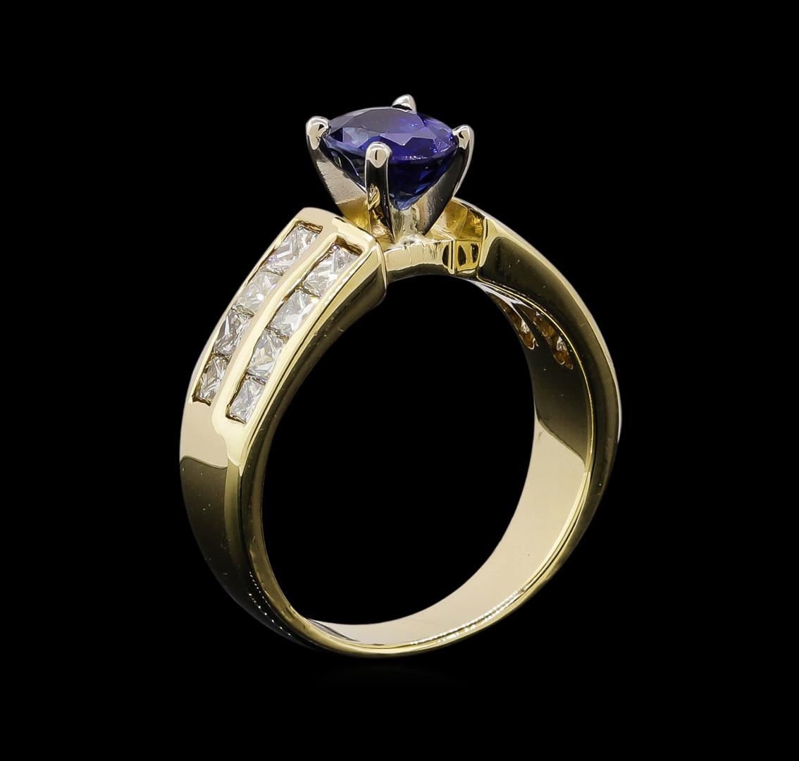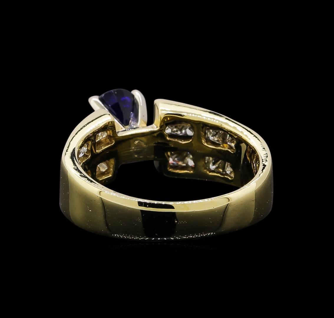 One ring : 14KT yellow gold weighing 5.35gm containing one sapphire with a total weight of 1.32ct and diamonds weighing 0.7ctw.