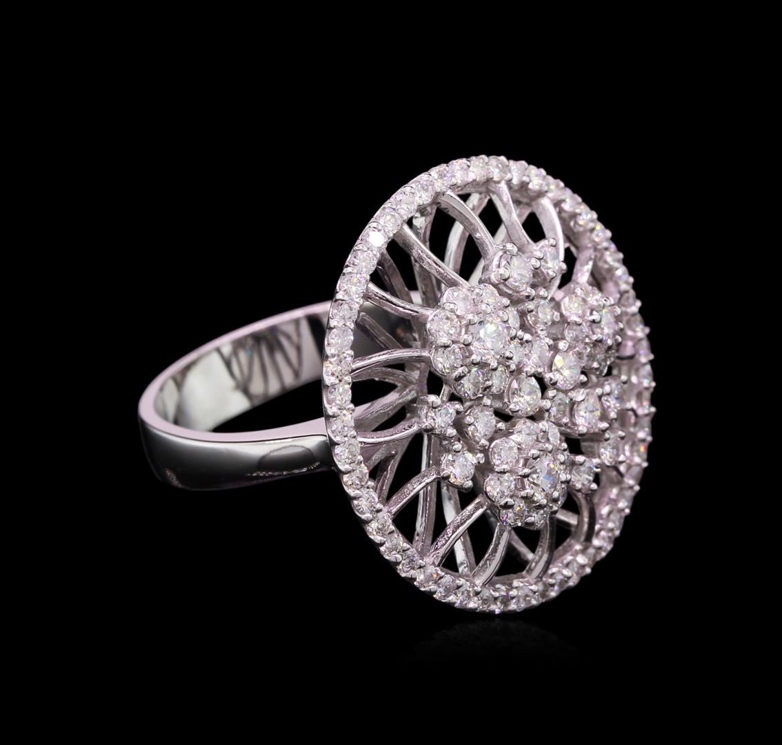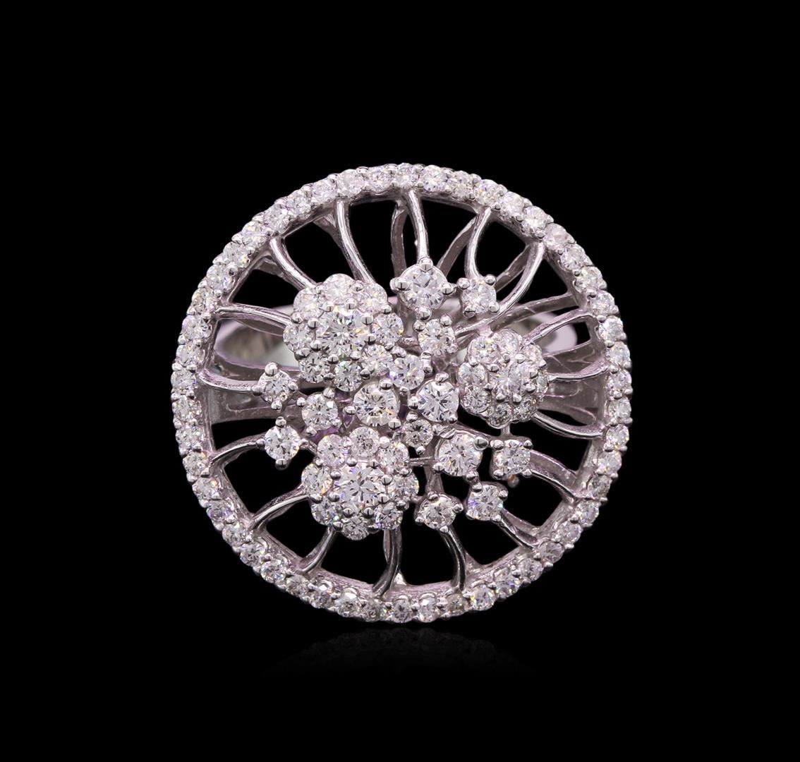 One electronically tested 14KT white gold lady's cast circle ring with a tapered shank with a bright polish finish. The featured lady's ring has a shank measuring 4.28 millimeters wide. Identified with markings of "K14". Condition is new, good workmanship. Containing: Seven prong set round brilliant cut diamonds, measuring 2.50 - 2.20 x 1.53mm (depth est.) approximate total weight of 7 Stones = 0.36ct. Graded in the setting. Clarity: VS-2 to SI-1. Color: G - I. Cut Good Thirty-Three prong set round brilliant cut diamonds, measuring 1.70 - 1.50 x 0.96mm (depth est.) approximate total weight of 33 Stones = 0.47ct. Graded in the setting. Clarity: VS-2 to SI-1. Color: G - I. Cut Good Fifty-One prong set round brilliant cut diamonds, measuring 1.40 - 1.30 x 0.88mm (depth est.) approximate total weight of 51 Stones = 0.50ct. Graded in the setting. Clarity: VS-2 to SI-1. Color: G - I. Cut Good. Total Weight of Diamonds 1.33ct. Total Weight of Ring 7.30gm. GAS Appraised at $5,345.00.