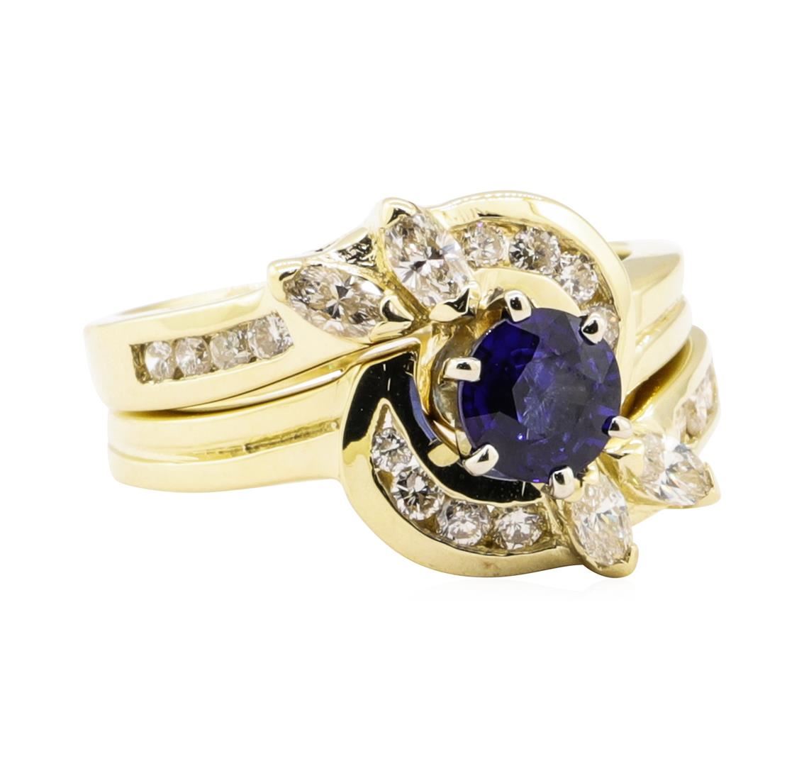 One set electronically tested 14KT yellow gold lady's combination cast & assembled fashion ring and band with a bypass swirl with a bright polish finish. The featured lady's ring set has a double shank measuring 4.40 millimeters wide. Identified with mark