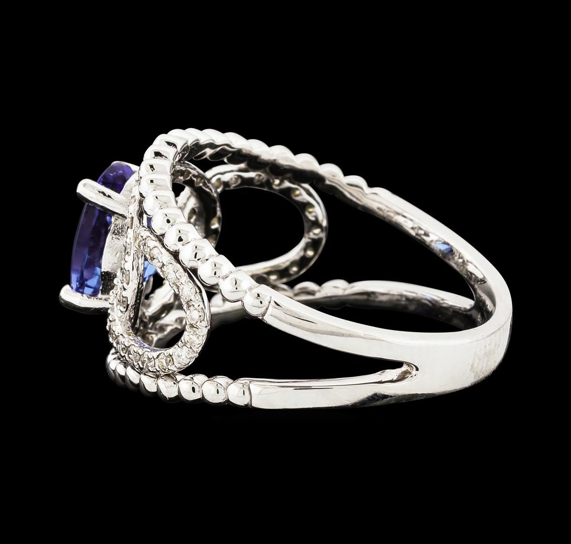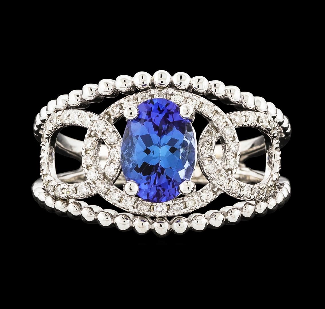 One ring : 14KT white gold weighing 3.85gm containing one tanzanite center stone with a total weight of 1.38ct and side diamonds weighing 0.35ctw.