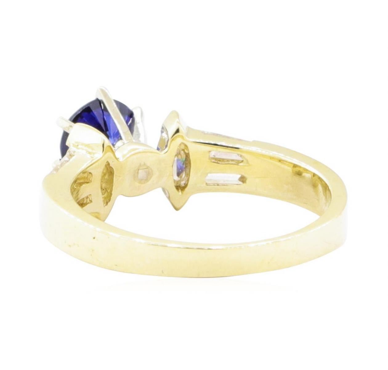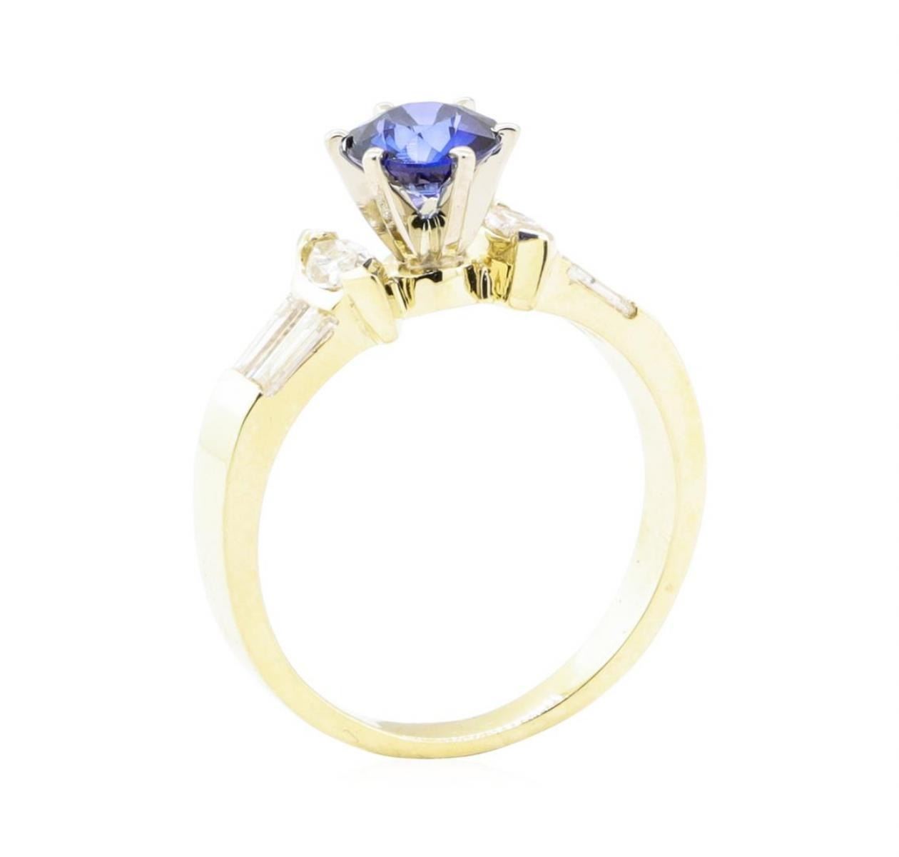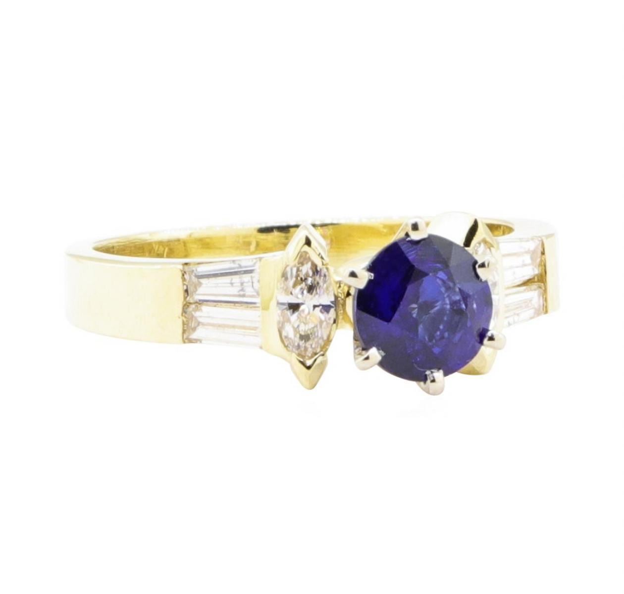 One ring featuring: 14KT yellow gold weighing 3.4 grams containing one sapphire weighing 0.89ct and diamonds weighing 0.50 ctw.