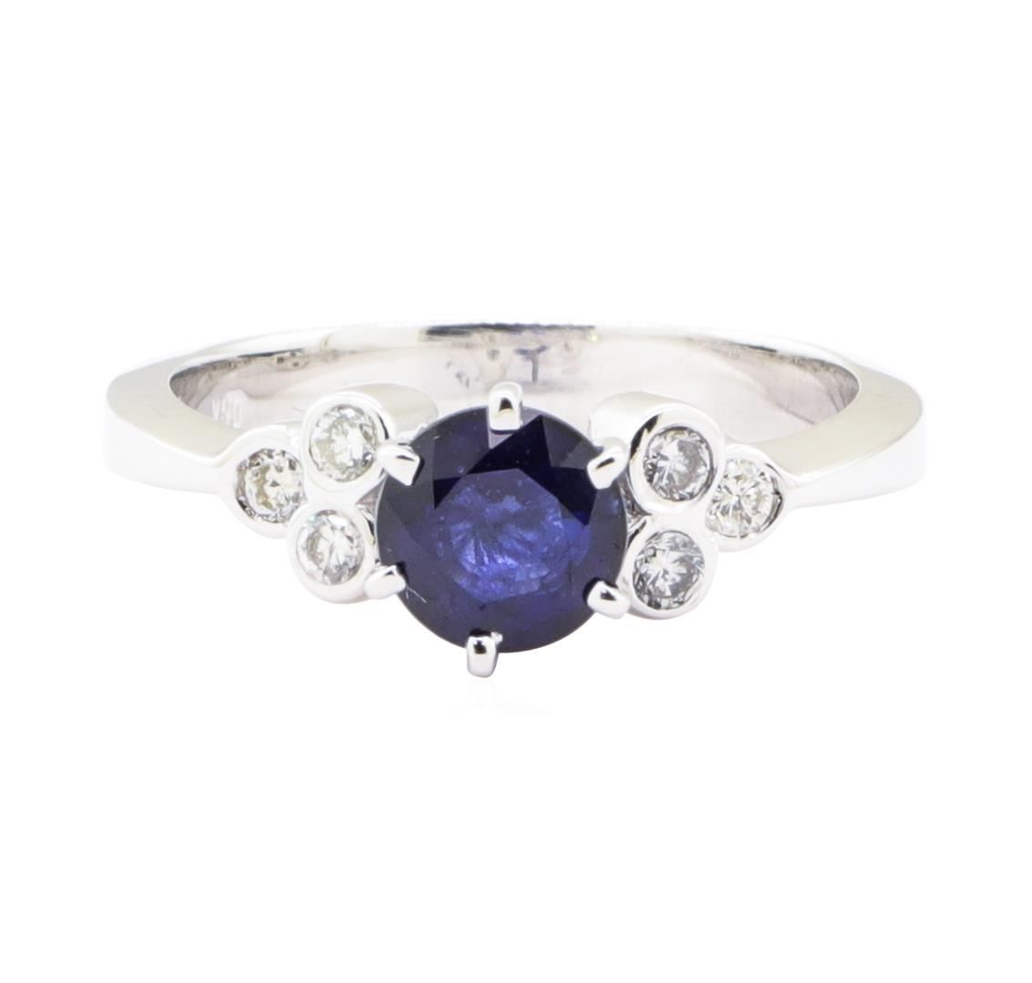 One ring featuring: 18KT white gold weighing 4.4 grams containing one sapphire weighing 1.14ct and diamonds weighing 0.30ctw.
