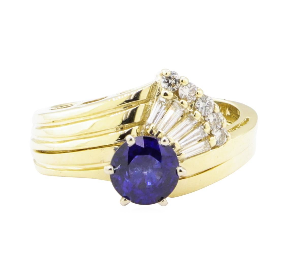 One ring featuring: 14KT yellow gold weighing 5.7 grams containing one sapphire weighing 1.04ct and diamonds weighing 0.50ctw.