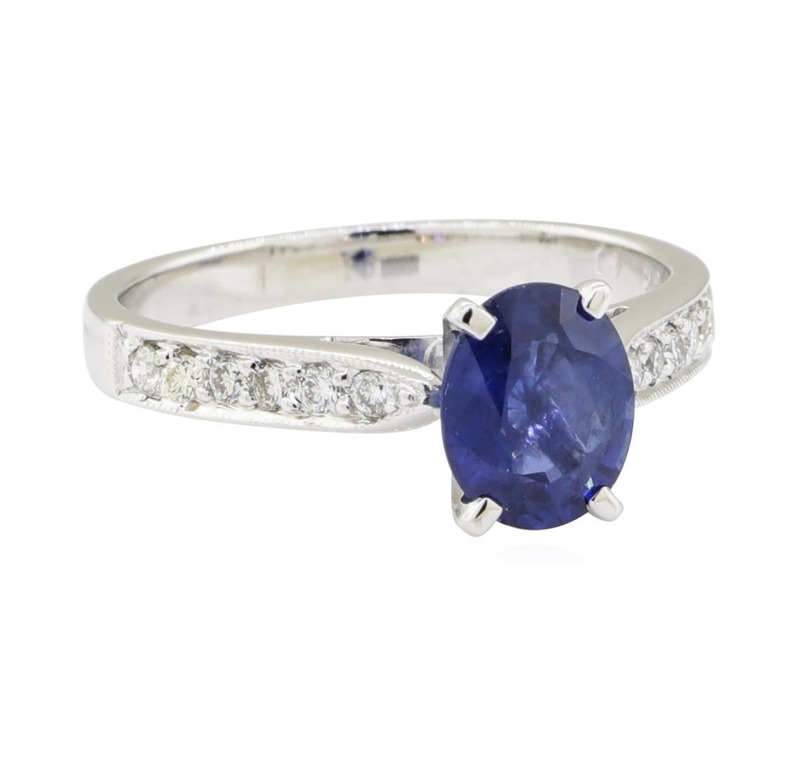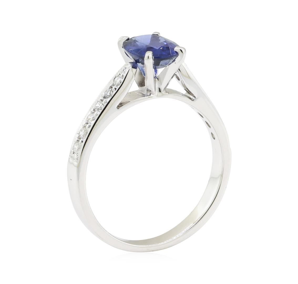 One ring featuring: 18KT white gold weighing 3.0 grams containing one oval shaped sapphire weighing 1.26ct and diamonds weighing 0.30ctw.