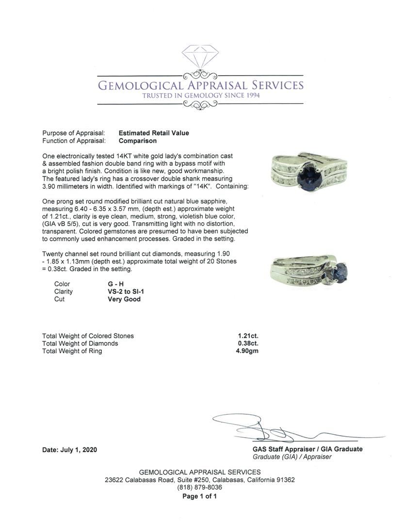 One electronically tested 14KT white gold lady's combination cast & assembled fashion double band ring with a bypass motif with a bright polish finish. The featured lady's ring has a crossover double shank measuring 3.90 millimeters in width. Identified w