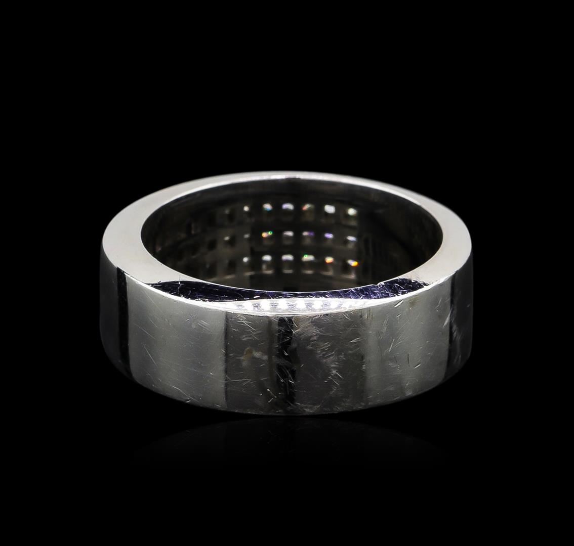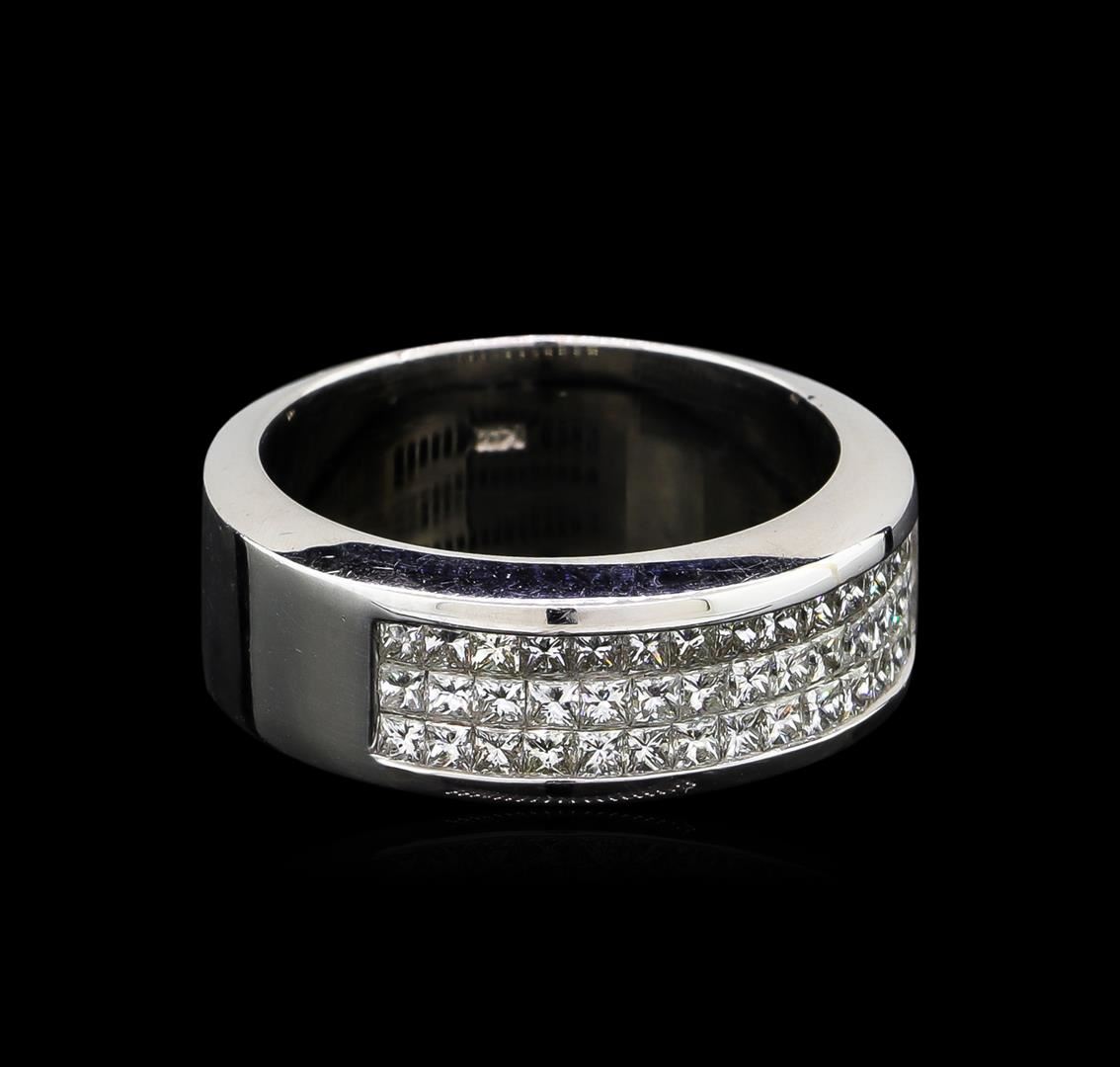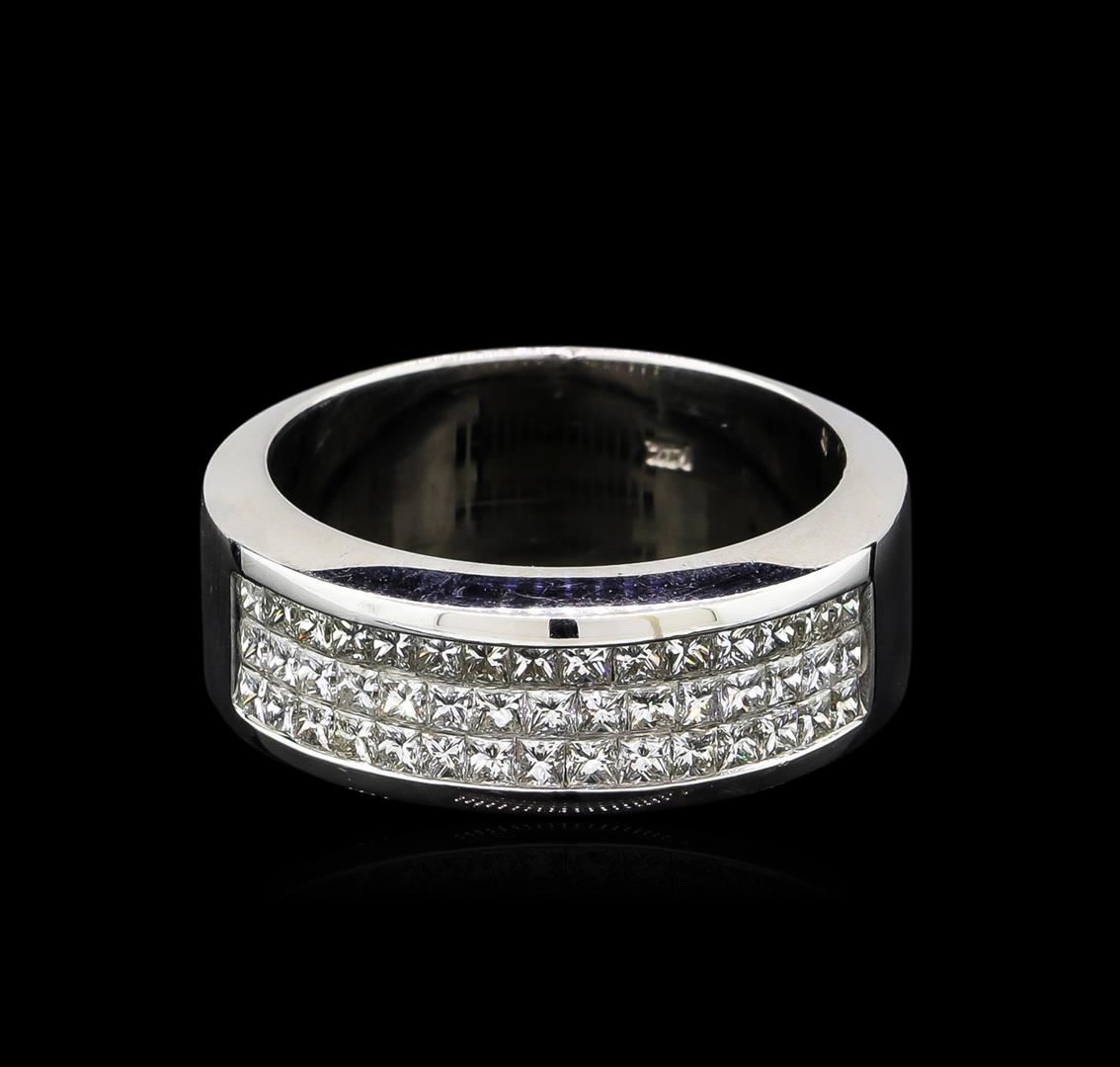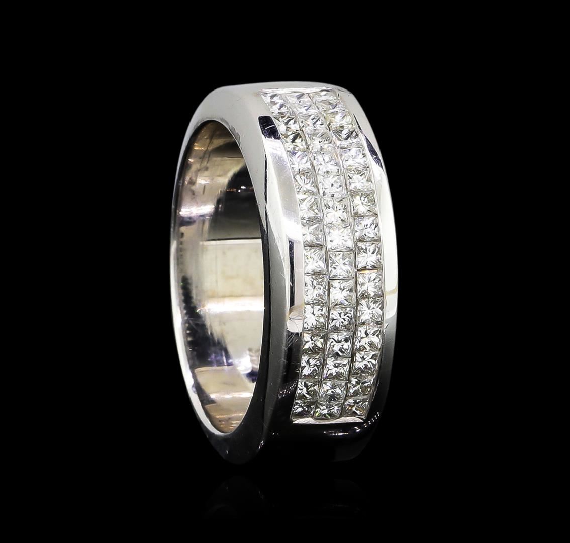 14K White Gold 1.60 ct Diamond Mens Ring. Description: Metal: 14k solid white gold. Face Measurements: 9 x 23mm. Size: 10.5. Shank Width: 9mm. Finish: bright polish. Total Item Weight: 15.2 grams. Markings: stamped 14K. Country Made: USA. Main Stone: diamond. Quantity: 45. Shape: princess Color: white. Carat Total Weight: 1.60. Measurements: 1.7 x 1.7mm. Treatment: none. Setting: invisible. Color Grade: G-H. Clarity: VS2-SI1. Cut: very good. Excellent Workmanship. Gemstones graded in the mounting. BHGL Appraised.