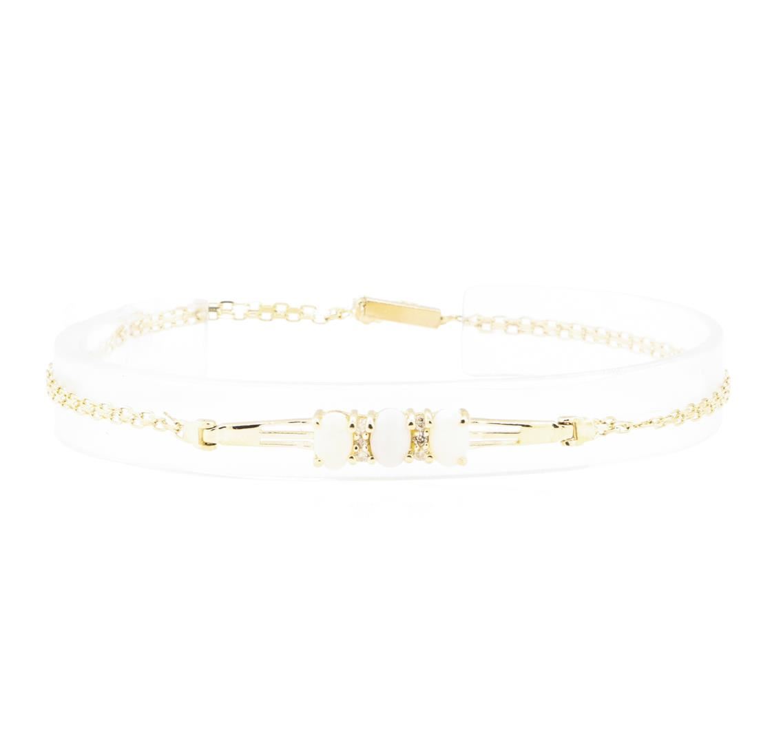 One bracelet measuring approximately seven and a half inches in length featuring: 14KT yellow gold weighing 3.5 grams containing three opals weighing 1.50ctw and diamonds weighing 0.10ctw.