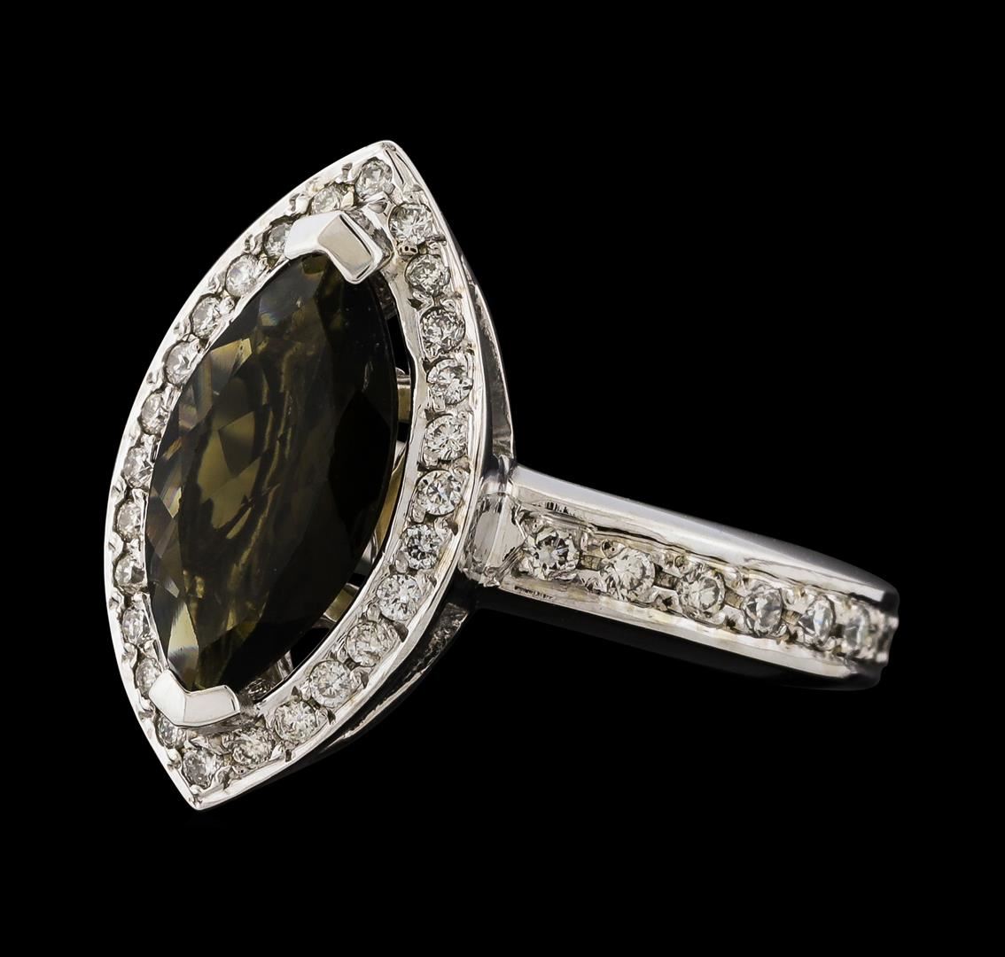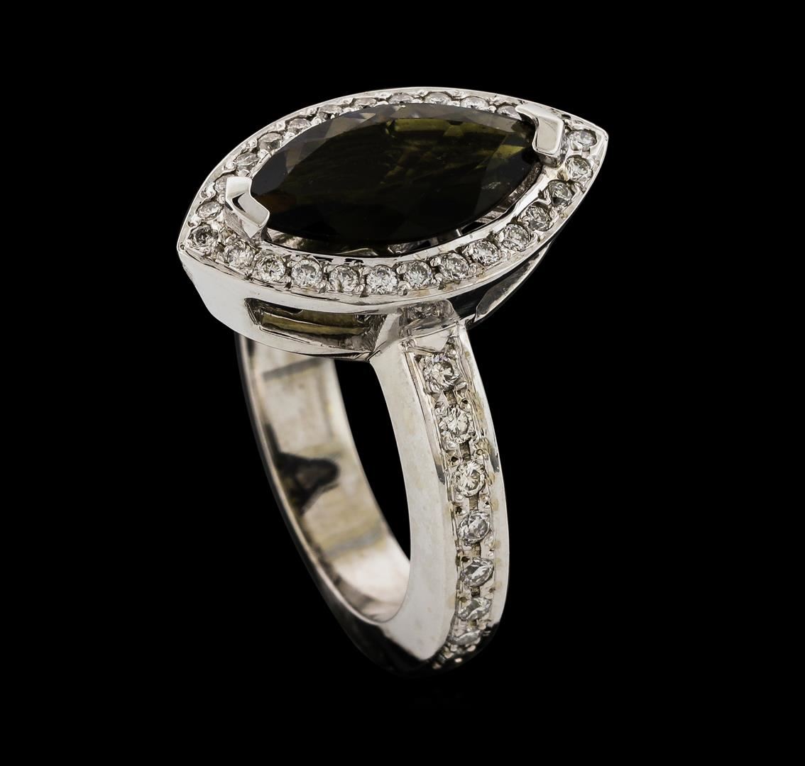 One ring : 14KT white gold weighing 8.28gm containing tourmaline with a total weight of 1.61ctw and side diamonds weighing 0.52ctw.