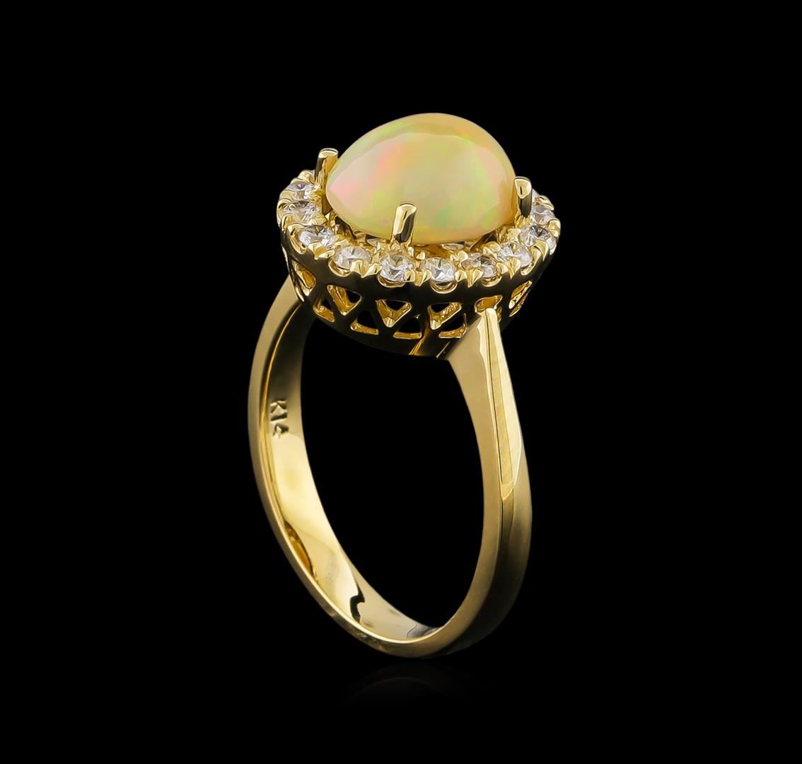 One ring featuring: 14KT yellow gold weighing 4.48 grams containing one opal center stone with a total weight of 1.70 ct and diamonds with a total weight of 0.40 ct.