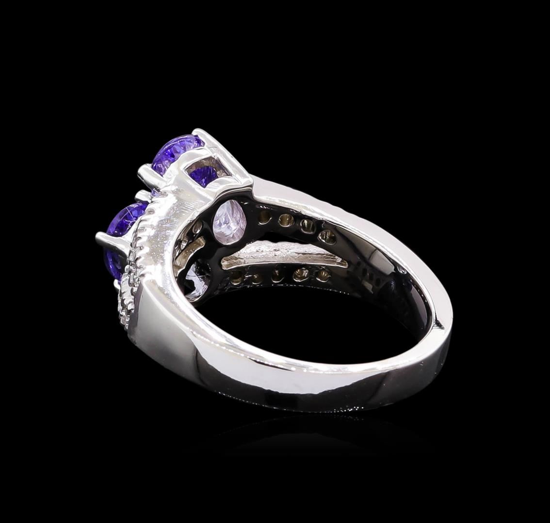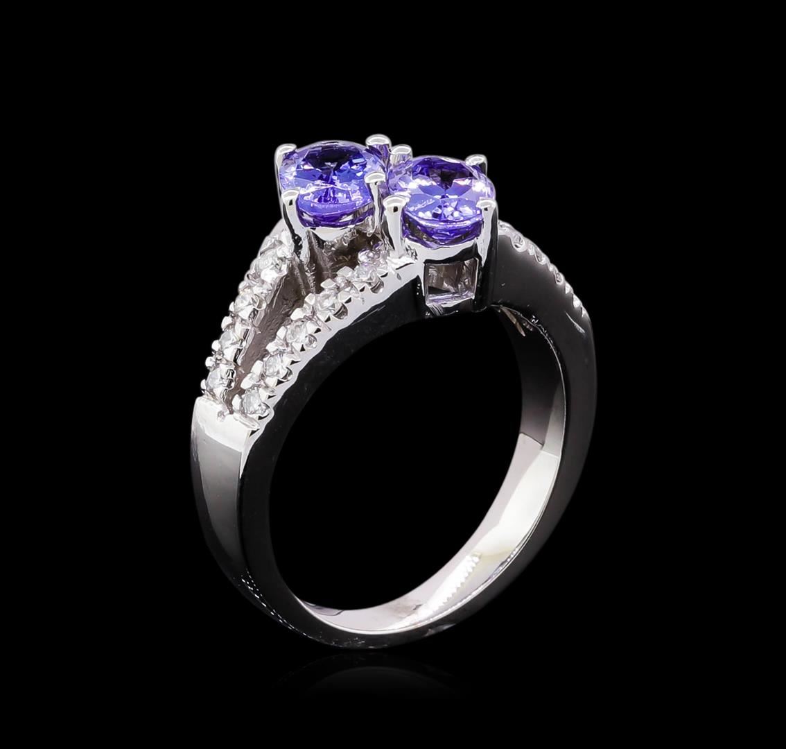 One ring featuring: 14KT white gold weighing 8.05 grams containing two tanzanite with a total weight of 1.70ct and diamonds with a total weight of 0.25ct.