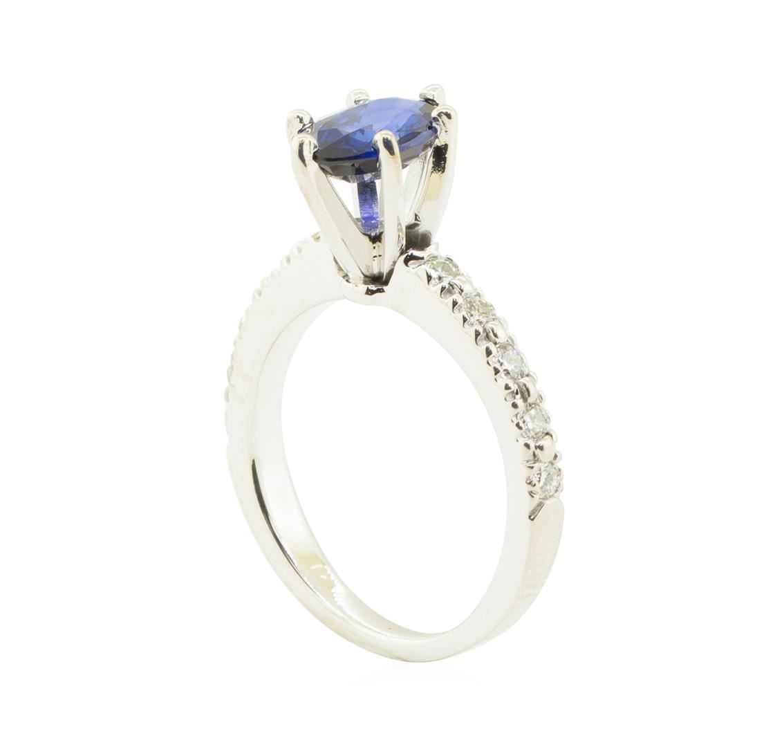 One ring featuring: 14KT white gold weighing 3.4 grams containing one blue sapphire weighing 1.23ct and diamonds weighing 0.50ctw.
