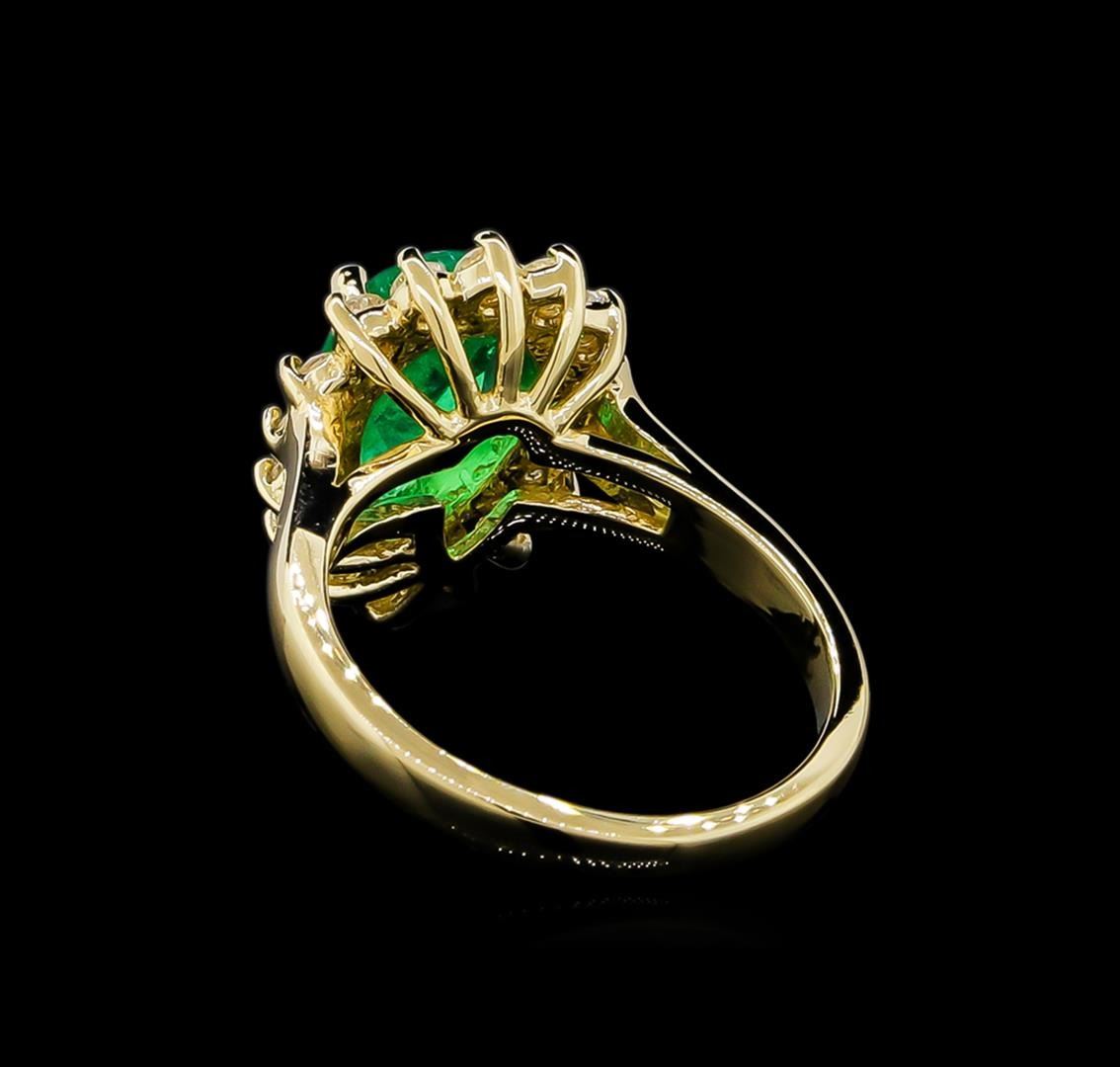One ring featuring: 14KT yellow gold weighing 5.41 grams containing one emerald with a total weight of 1.73ct and side diamonds with a total weight of 0.55ct.