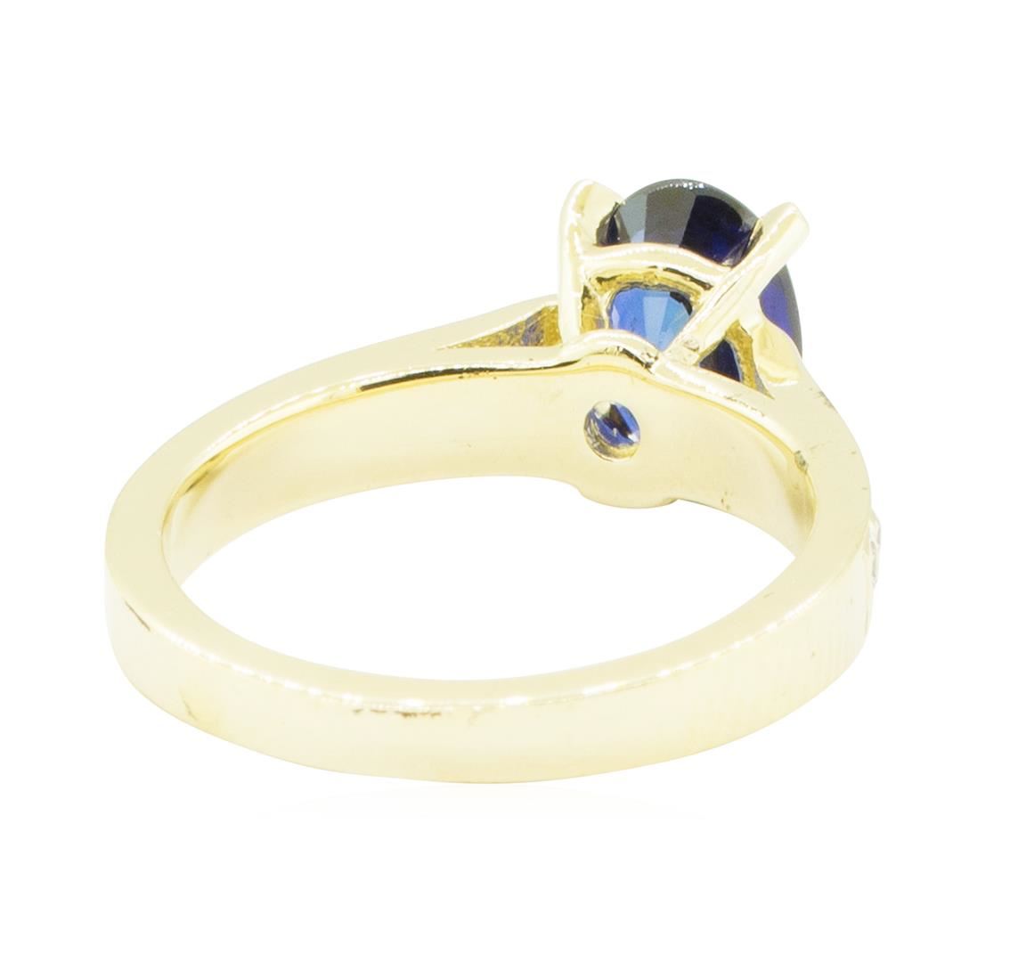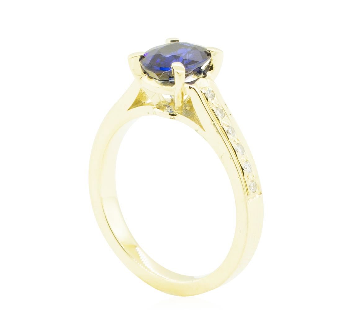 One ring featuring: 14KT yellow gold weighing 4.3 grams containing one blue sapphire 1.59ct and diamonds weighing 0.15ctw.