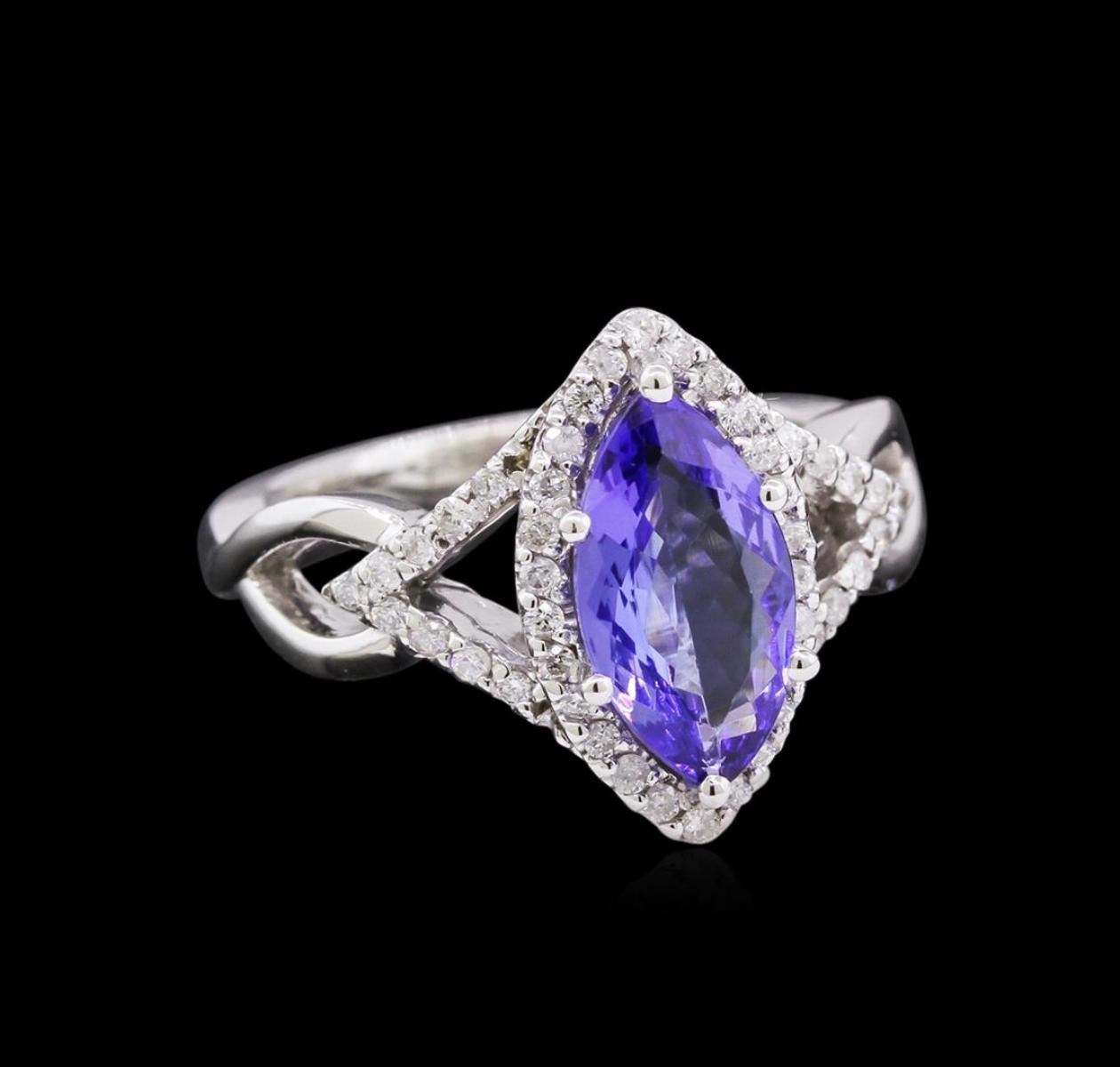 One ring featuring: 14KT white gold weighing 5.45 grams containing one tanzanite with a total weight of 1.75ct and diamonds with a total weight of 0.30ct.