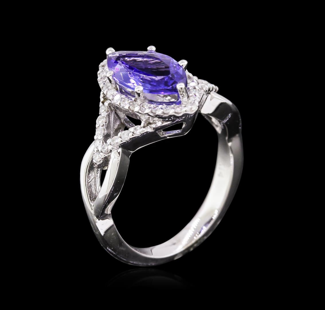 One ring featuring: 14KT white gold weighing 5.45 grams containing one tanzanite with a total weight of 1.75ct and diamonds with a total weight of 0.30ct.