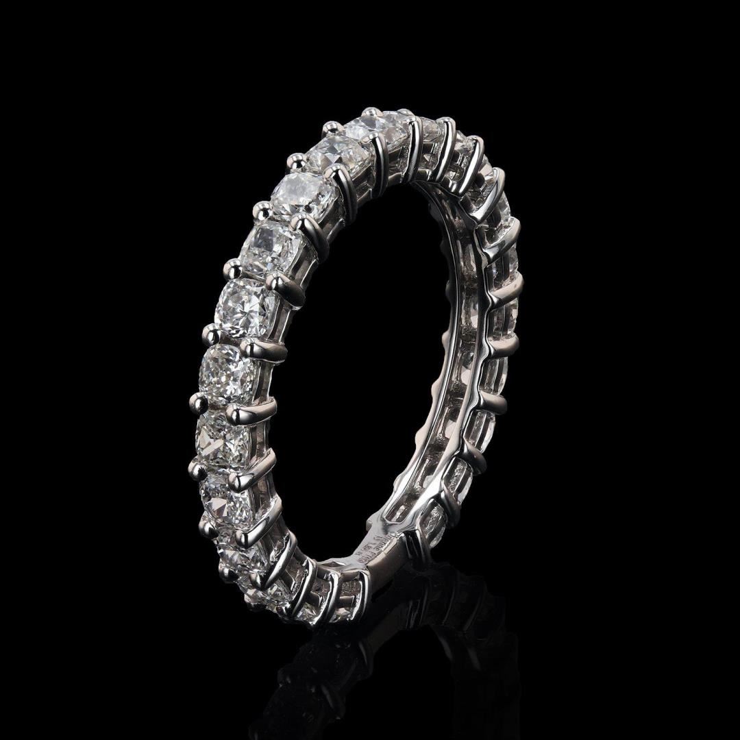 ONE PLATINUM CUSTOM MADE LADIE'S DIAMOND BAND. 3.50 GR TW. CONTAINING: 1 â€" MAIN CENTER GEMSTONE(S): IDENTITY : ALL NATURAL DIAMONDS SET IN PRONGS SETTING STYLE. CARAT WEIGHT : 1.84 CT . 22 COUNTS. SHAPE & MEASUREMEMT : CUSHION BRILLIANT CUT. APPROX : 2.5 X 3 MM. QUALITY : VS2/SI CLARITY , F/G COLOR. ALL FINE CUTTING AND PROPORTIONS. ALL PRONGS SETTINGS STYLE. TOTAL DIAMONDS WEIGHT : 1.84 CTS TW. #LREF-5237