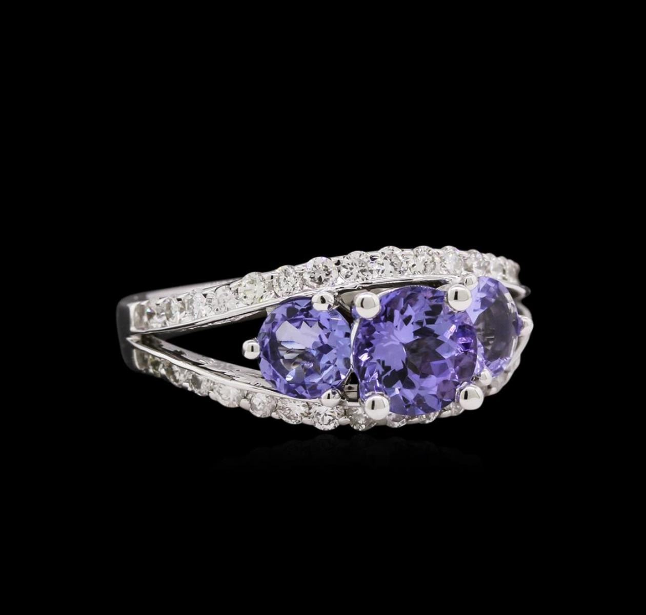 One ring featuring: 14KT white gold weighing 5.35 grams containing 3 tanzanite with a total weight of 1.88ct and diamonds with a total weight of 0.69ct.