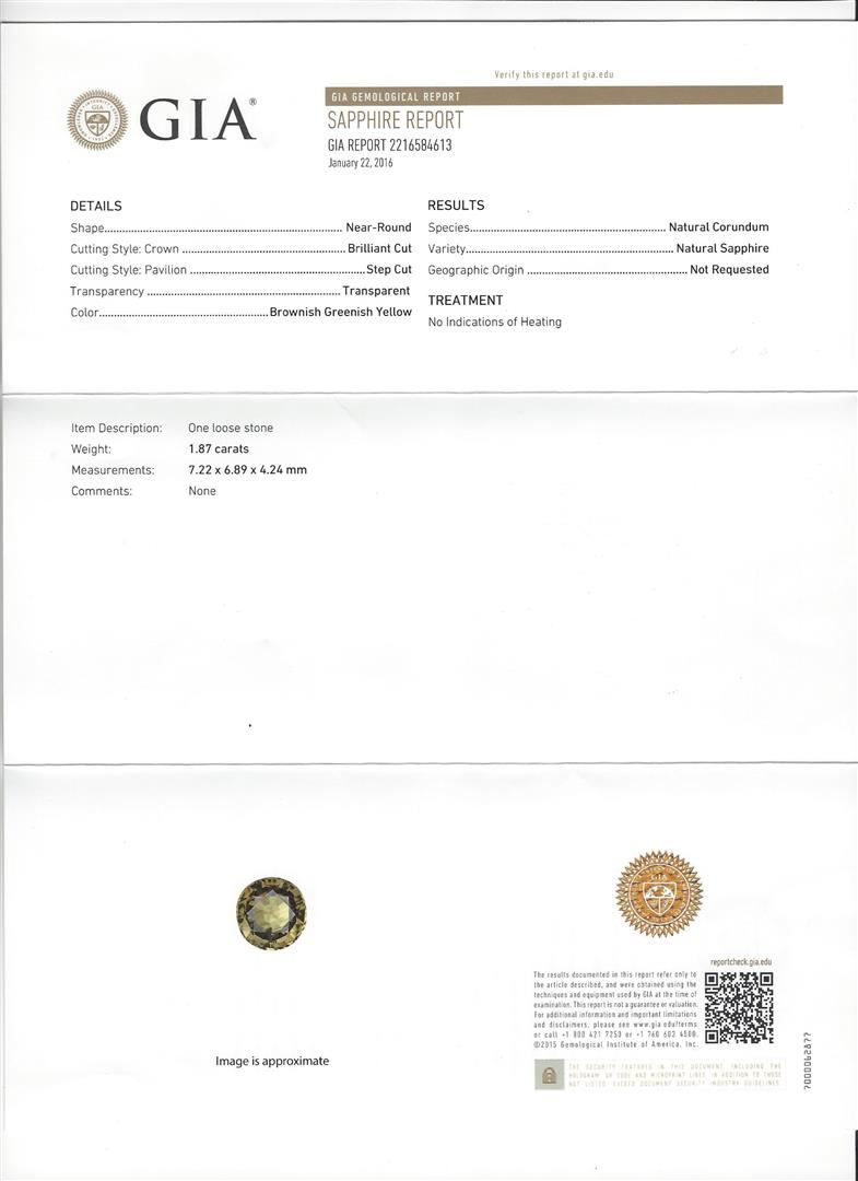 One 1.87ct Sapphire and Diamond Ring - 18KT White Gold. AIG certified. See Appraisal for more details. AIG Appraised.