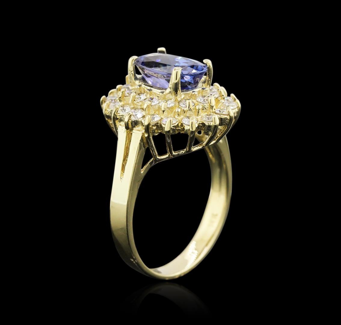 One ring featuring: 14KT yellow gold weighing 5.60 grams containing one tanzanite center stone with a total weight of 1.90ct and 32 diamonds with a total weight of 0.77ct.