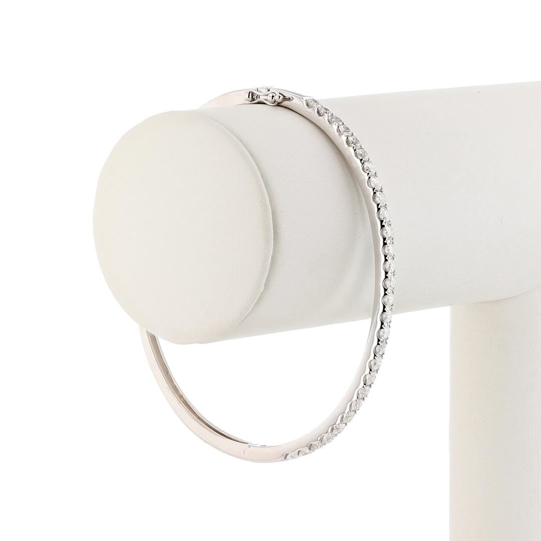 One polished, stamped, and tested 14 karat white gold bangle bracelet with a bright finish. The bangle is mounted with 28 genuine round diamonds weighing approximately 1.93 carats. This item weighs 12.0 grams, condition is new, excellent workmanship. MAIN GEMSTONES Identity: Natural Diamond Shape: Round Cutting Style: Brilliant Cut Quantity: 28 Diamonds Average Diameter: 2.5 mm Total Weight: 1.93 carats Color Grade: H - J Clarity Grade: SI-1 to I-1 Cut Cut Grade: Very Good - Excellent Refractive Index: 2.418 Specific Gravity: 3.52 +/-0.01 Hardness: 10 TOTAL DIAMOND WEIGHT: 1.93 cts WEIGHT OF ITEM: 12.0 grams GOLD CONTENT: 14K White Gold