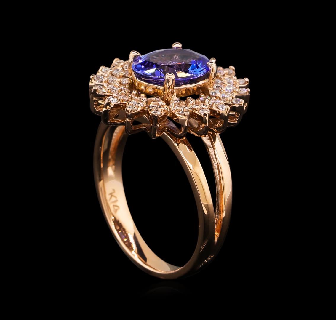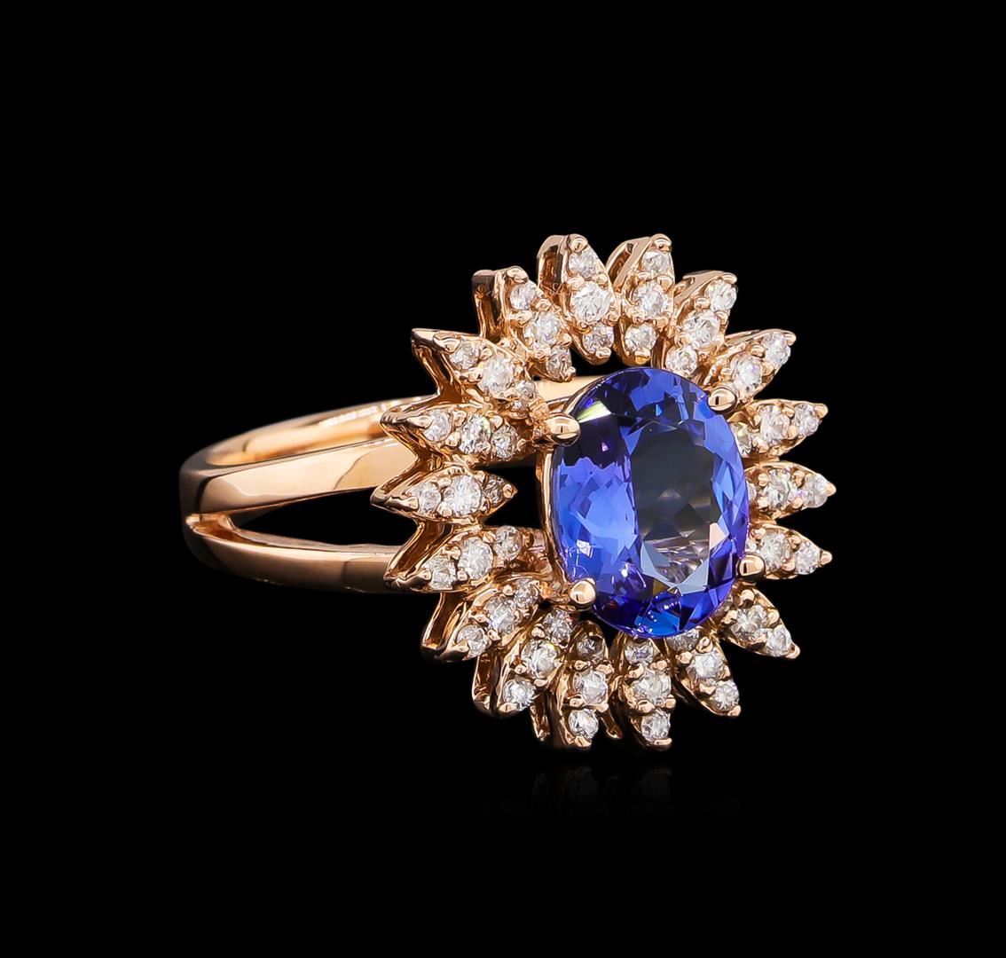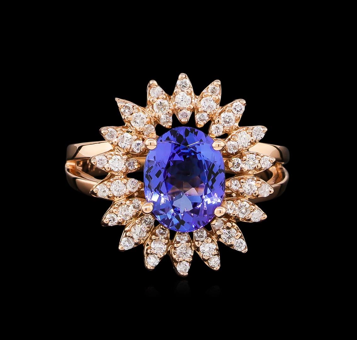 One ring featuring: 14KT rose gold weighing 5.91 grams containing one tanzanite with a total weight of 1.93ct and side diamonds with a total weight of 0.47ct.