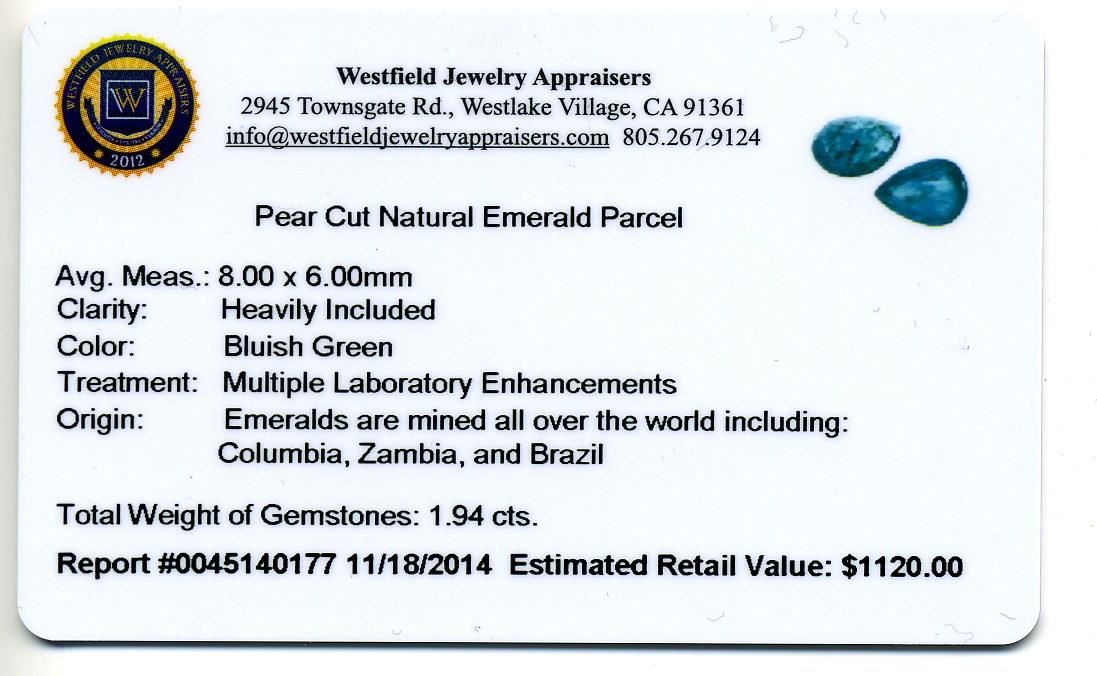One 1.94 ctw Pear Cut Natural Emerald Parcel.