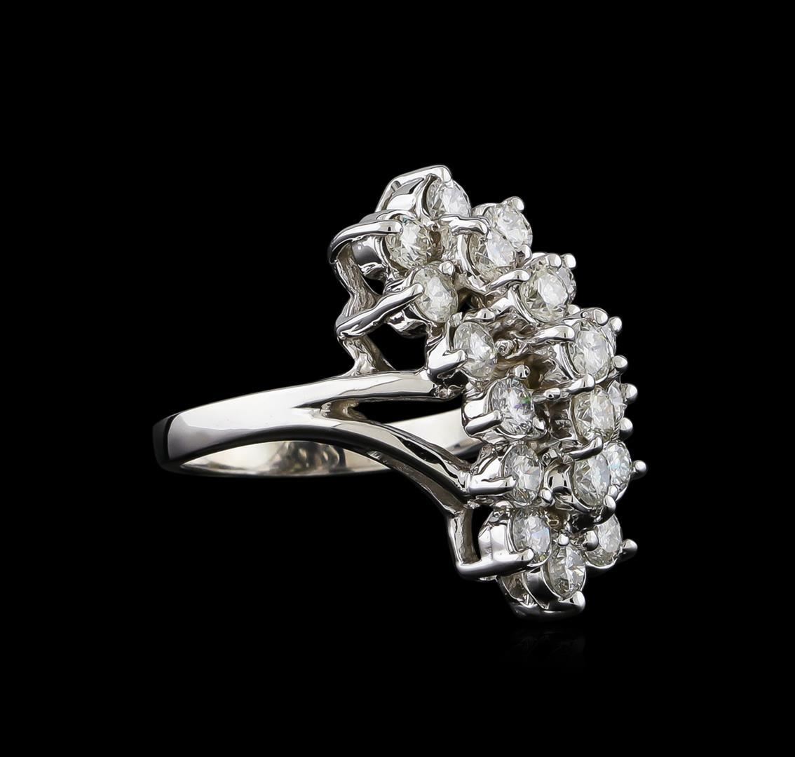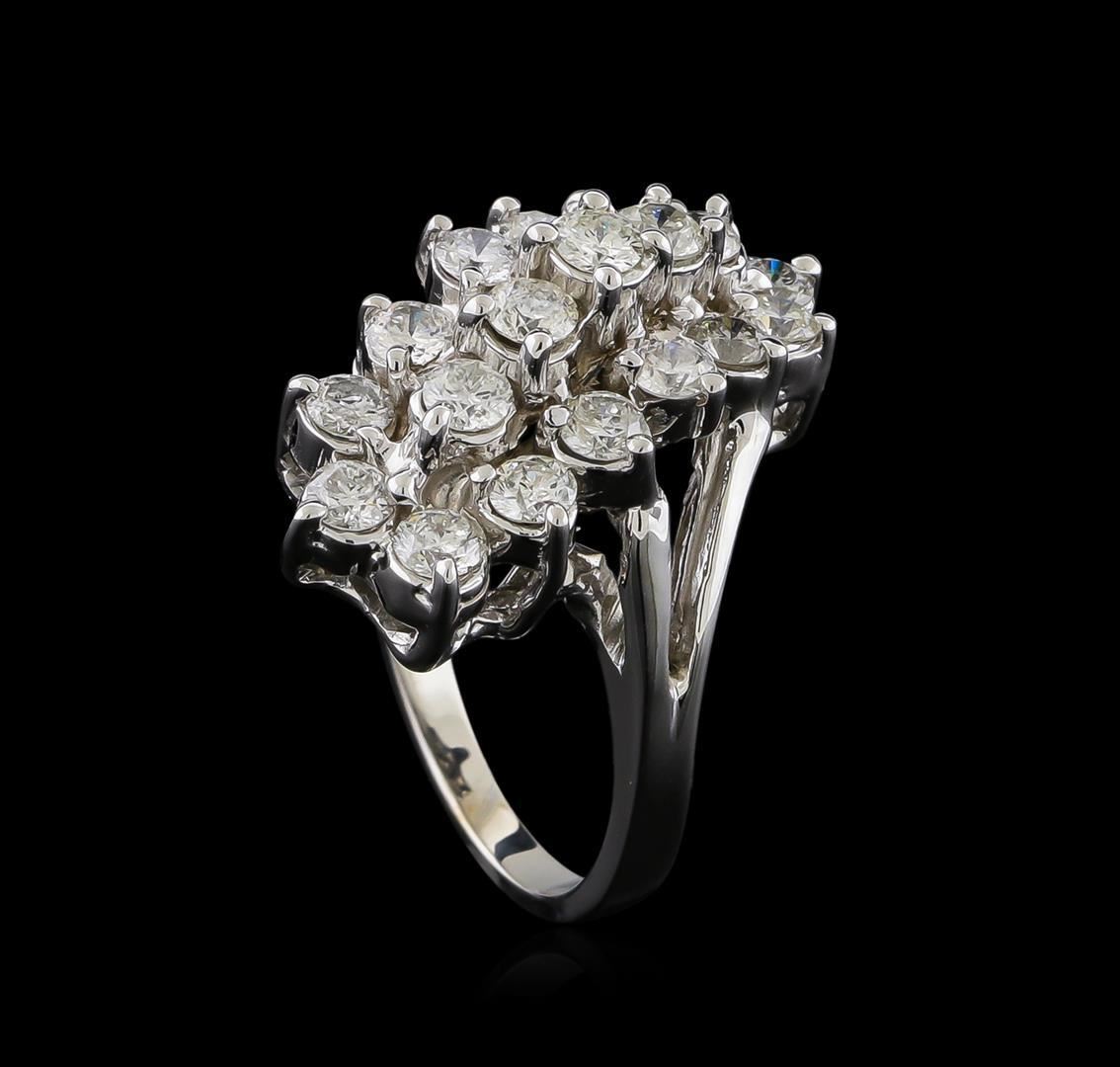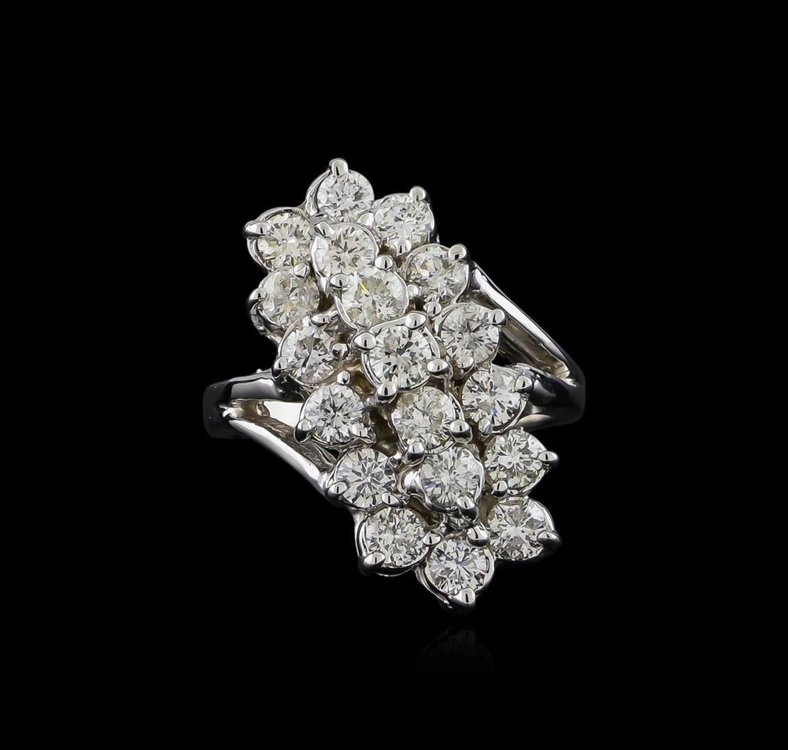 One electronically tested 14KT white gold lady's cast waterfall ring with a bright polish finish. The featured lady's ring has a shank measuring 2.11 millimeters wide. Identified with markings of "14K". Condition is new, good workmanship. Containing: Nineteen prong set round brilliant cut diamonds, measuring 3.10 - 3.00 x 1.83mm (depth est.) approximate total weight of 19 Stones = 1.95ct. Graded in the setting. Clarity: SI-1 to I-1. Color: H - I. Cut Good. Total Weight of Diamonds 1.95ct. Total Weight of Ring 8.20gm. GAS Appraised.