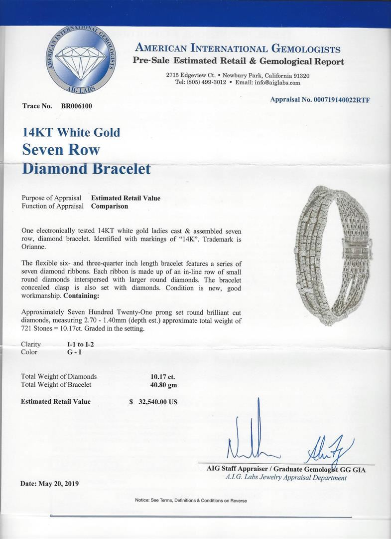 One 10.17ctw Diamond Bracelet - 14KT White Gold . AIG certified. See Appraisal for more details. AIG Appraised.