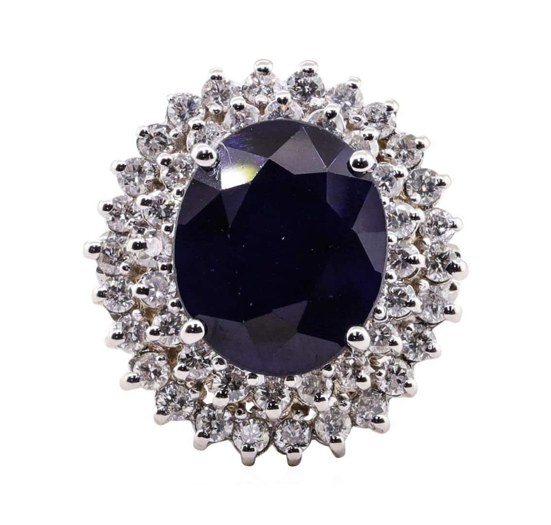 One 10.96ct Sapphire and Diamond Ring - 14KT White Gold . GLA certified. See Appraisal for more details. GLA Appraised.