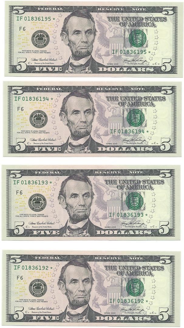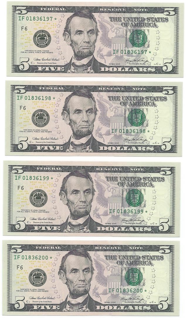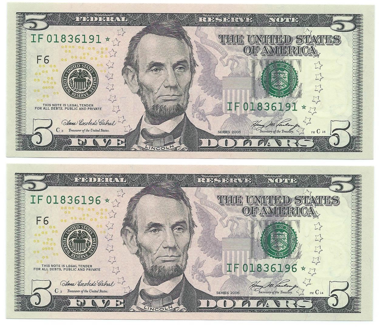 A lot of (10) Consecutive 2006 $5 FRN Star Notes CHCU