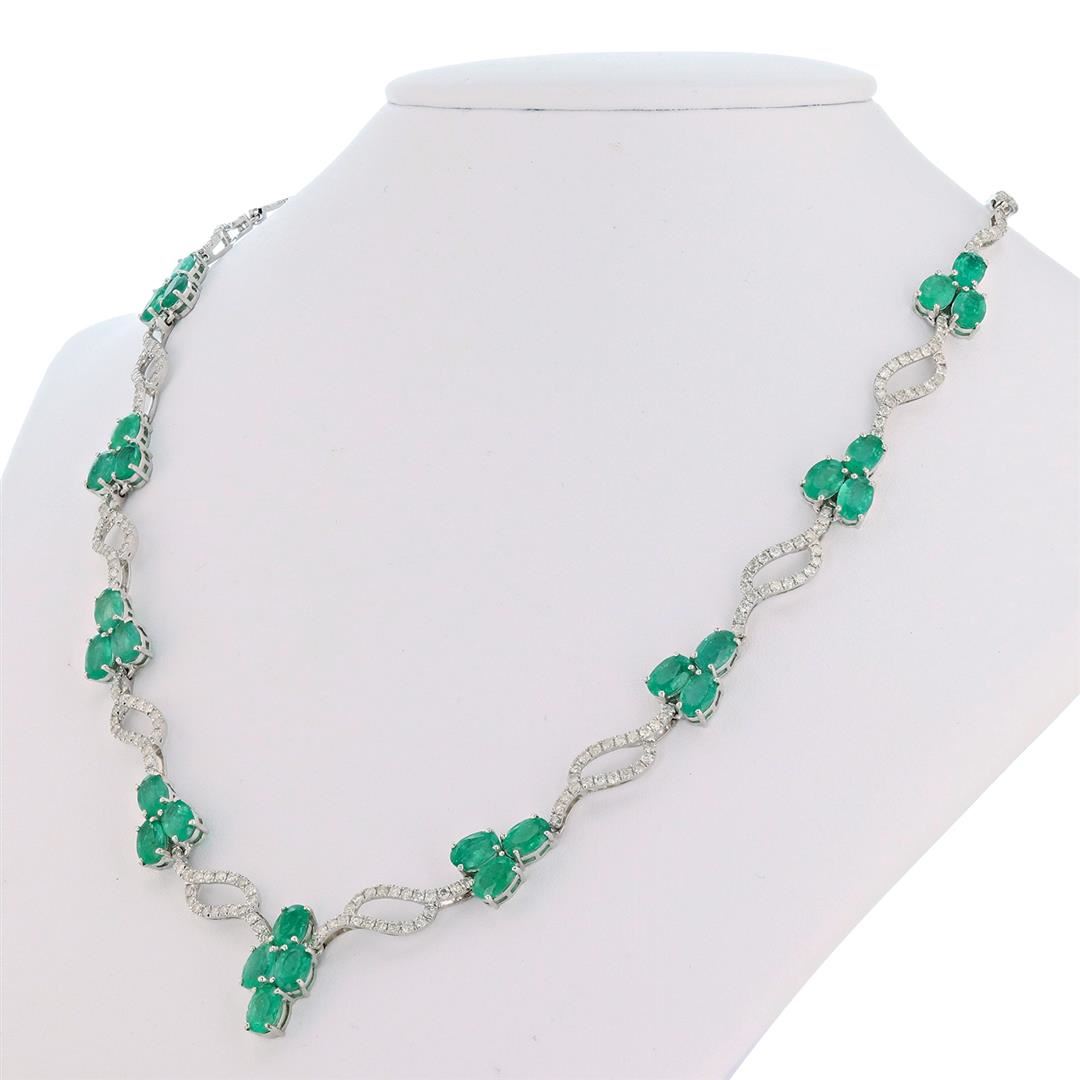 11.92 ctw Emerald and 3.64 ctw Diamond 18K White Gold Necklace