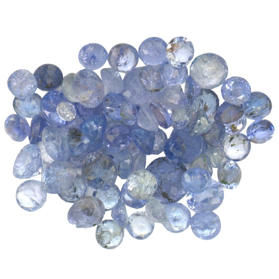 _x000D_Forty round mixed cut natural tanzanites exact total weight 11.98ct., clarity is slightly included, type I, medium dark, slightly grayish, violetish blue color, (GIA vB 6/2), cut is good. Measurements & the color grade are an average for the group, Color grade is an average for the group, Naturally occurring internal & external characteristics are present, Indications of laboratory high temperature heat treatment. Westfield Appraised.